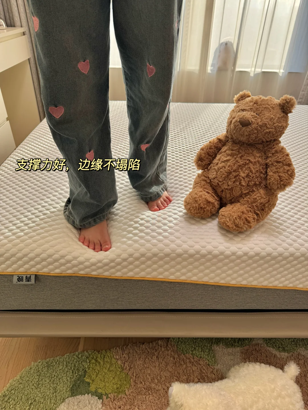 而且它对头部、腰部、臀部这几个重要位置的承托支撑性都很好,边缘也不塌陷,对我这种老腰和娃都很好。