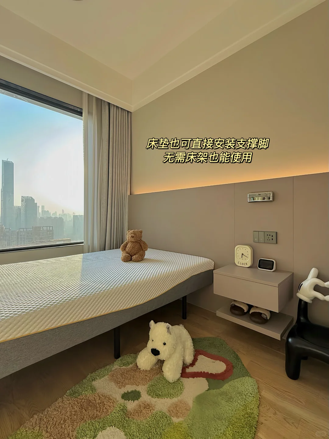 不管是排骨架还是储物床都能用。还可以直接放在地上当榻榻米,无需电动床架,更简洁安全。