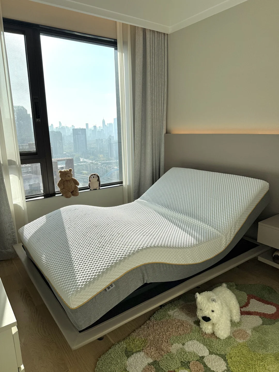 每天早上它还能定时叫醒,轻轻抬起床头,温柔叫醒,我的起床气都少了。