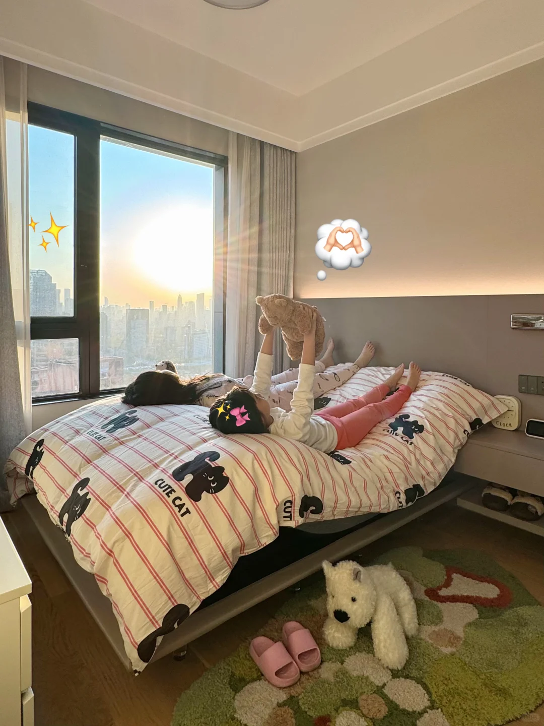 平时还可以直接在床上做做瑜伽给娃讲讲故事。