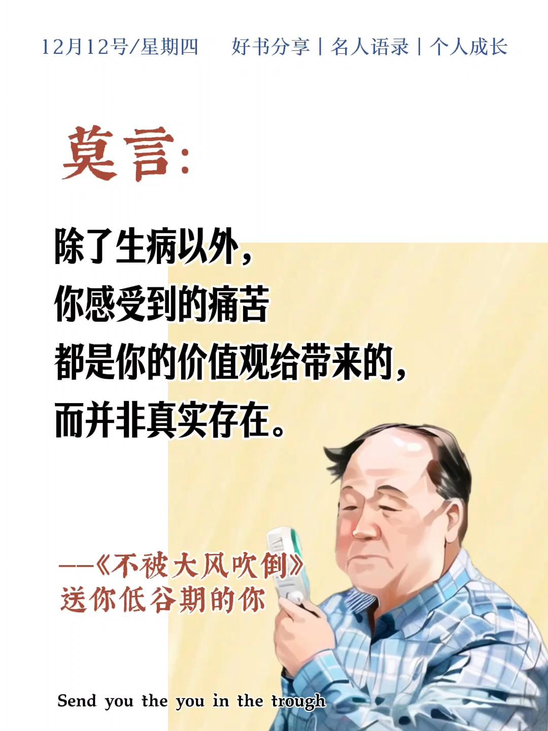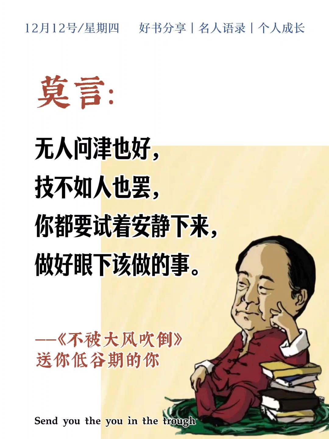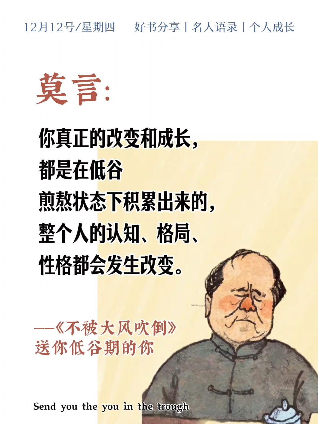 后劲太大了!低谷期都去看看这本书吧!如果你正感到迷茫,不想错过这本书--莫言的《不被大风吹倒》!这是莫言最新出版的自传式随笔集,专门写给那些在低谷中挣扎的年轻人。
