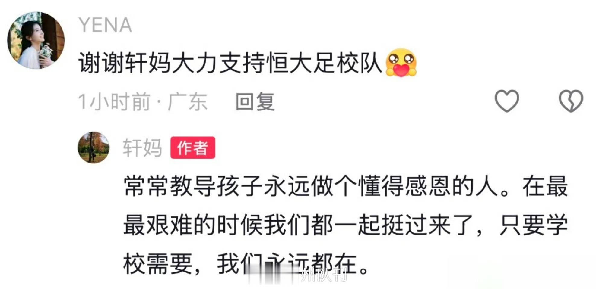 又例如王伟轩妈妈也说“常常教导孩子永远做个懂得感恩的人。在最最艰难的时候我们都一起挺过来了,只要学校需要,我们永远都在。”