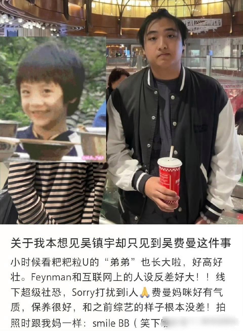 有网友在香港偶遇吴镇宇儿子费曼,被要求合影时费曼是肉眼可见地社恐,完全不像网上那样放飞自我!这是因为胖了变得不自信了吗?其实胖胖的也挺可爱吧!吴蒸鱼:“爸爸love u”,哈哈!