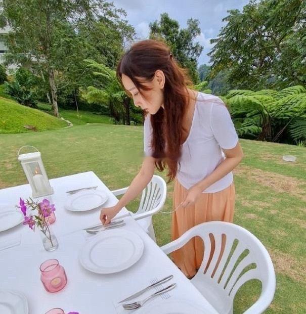 胡静嫁得才是真正的豪门,家里有超大的花园和院子,像个城堡一样