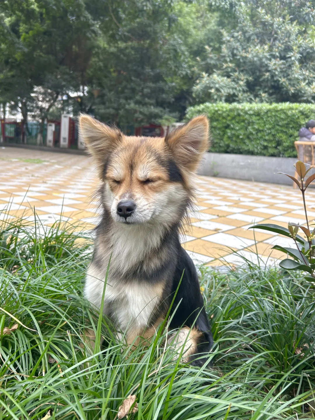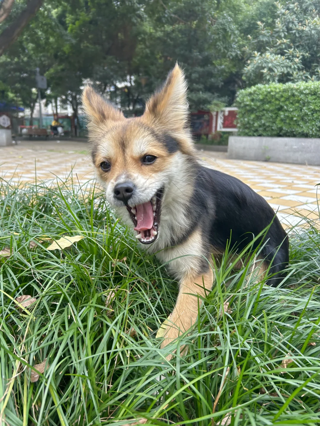 碰到不喜欢的地方,小黑会频繁的打呵欠,眯眼睛(图7、8),他用肢体动作表情暗示女友快点离开这个无聊的地方。