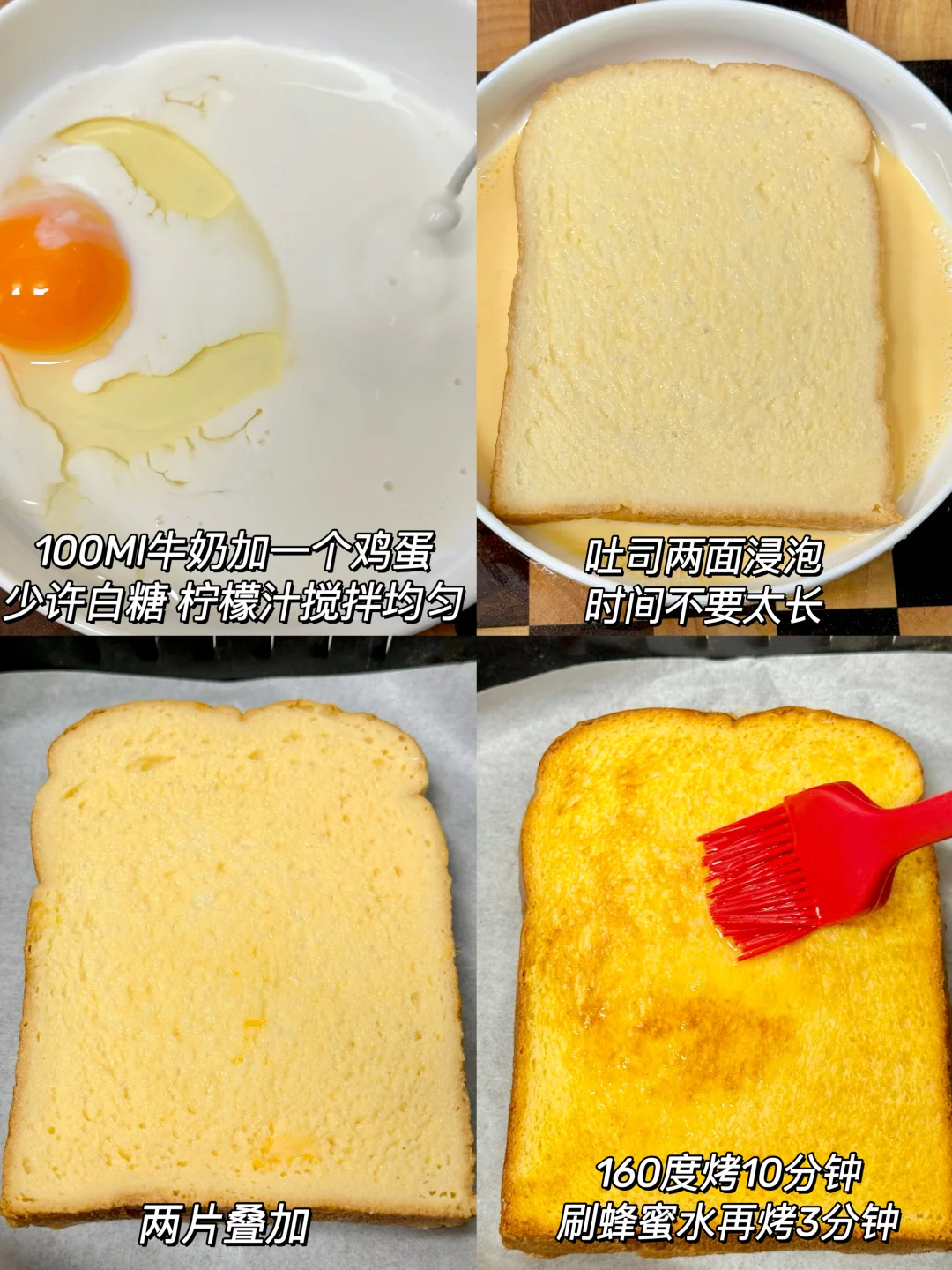 我怎么才学会这个蜂蜜牛奶烤吐司!! 真的好香甜啊啊~简单版西多士! 满口都是奶香~外面脆脆的 里面香甜松软 空气炸锅160度烤13分钟就搞定啦