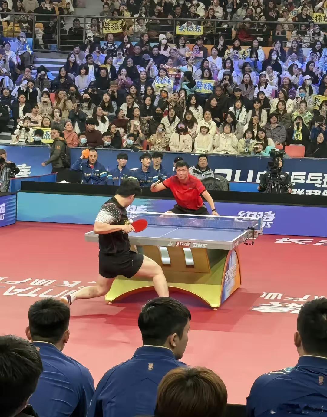 乒超联赛 来看看樊振东的绝世好腰和蜜大腿,图二都打到身上了还能打回来,不严谨地说这种球就樊振东能打得出来,对面老侯看懵了