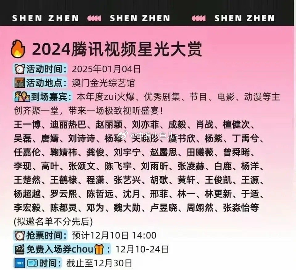 星光大赏出席嘉宾和拟邀名单这个阵容比尖叫之夜强!流量大花小花都来了又到了看帅哥美