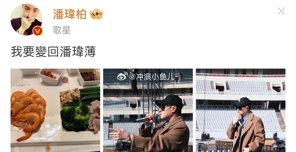 我真的要被潘玮柏的谐音梗笑死,他晒出自己的减脂餐,并发帖立志要变回“潘玮薄”。