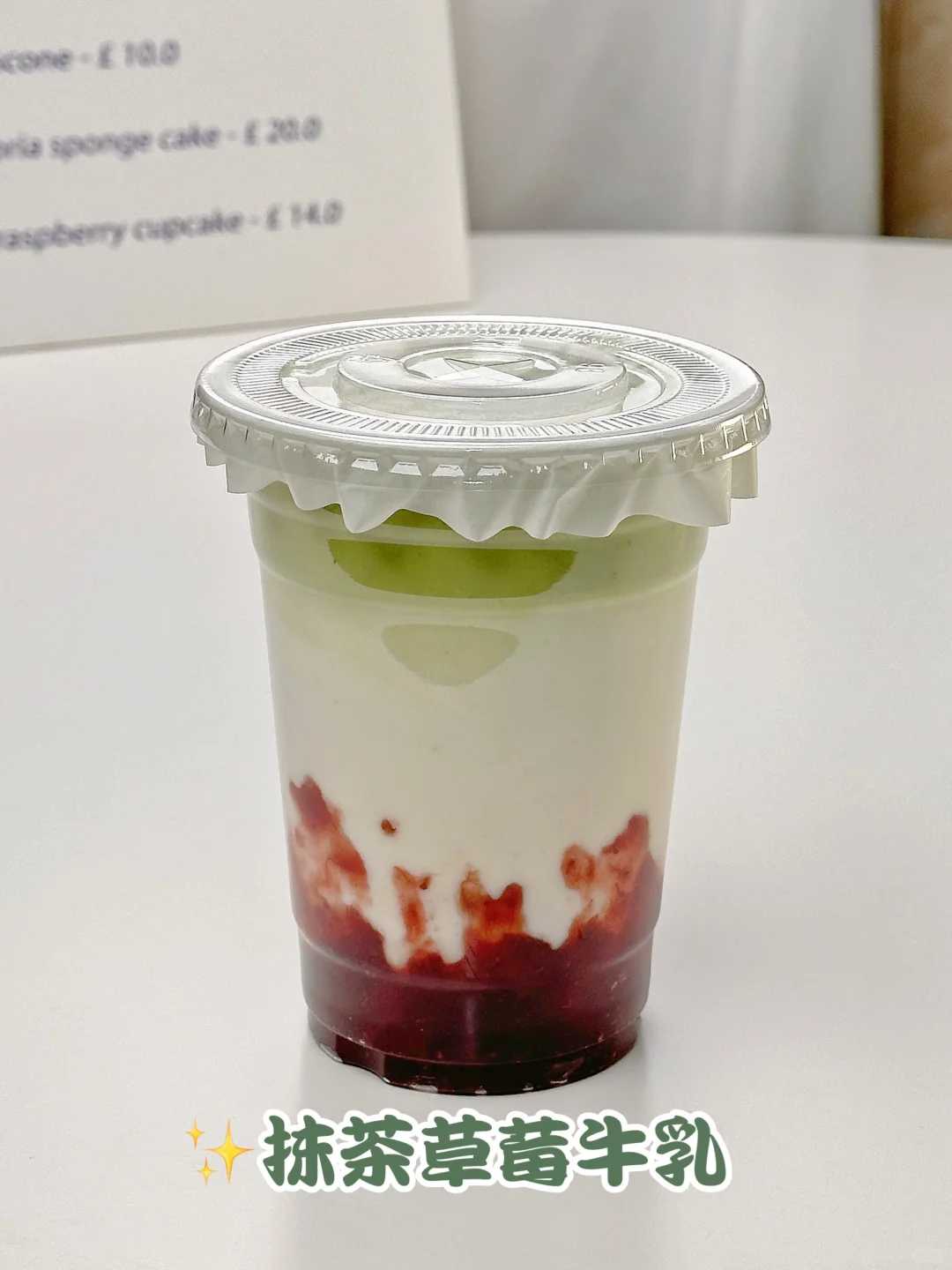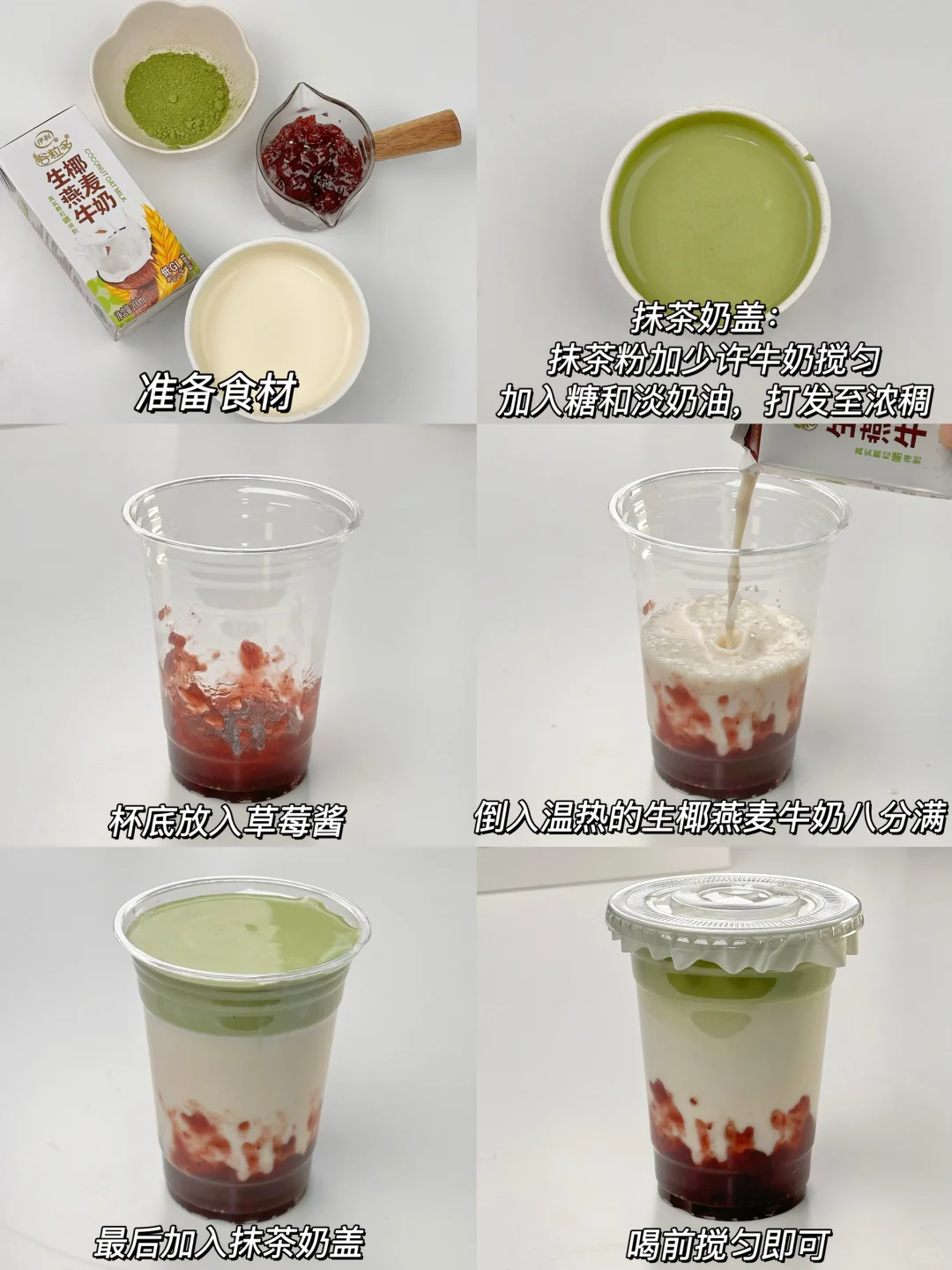 ✅抹茶草莓牛乳【抹茶粉、草莓酱、淡奶油、生椰燕麦牛奶】