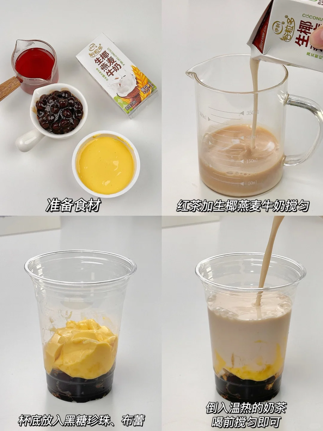 ✅布蕾珍珠奶茶【珍珠、布蕾、红茶、生椰燕麦牛奶】