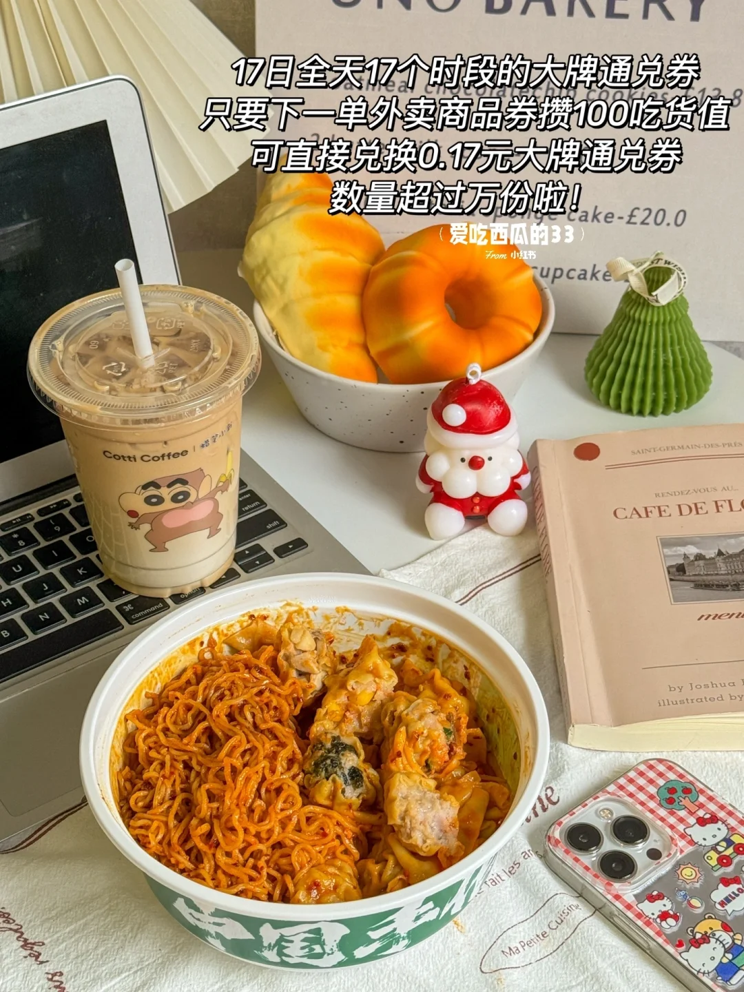 不想抢也可以下一单外卖商品券攒100吃货值🍽️