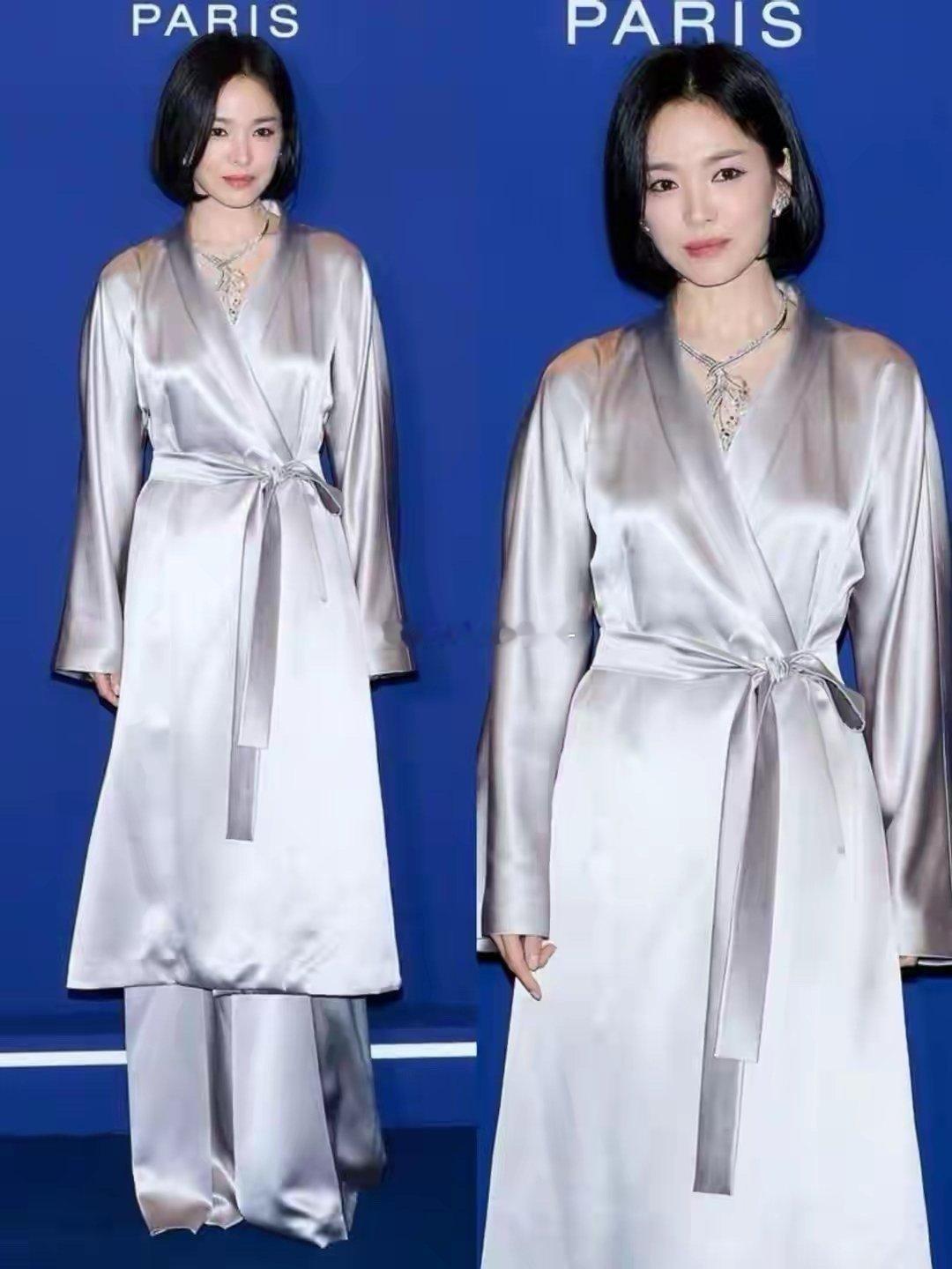 宋慧乔以一身睡衣风造型亮相活动,这穿搭选择可太让人意外了。不过,她的波波头短发造
