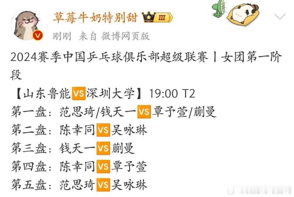 今晚王楚钦孙颖莎轮休不上场,莎头好好休息