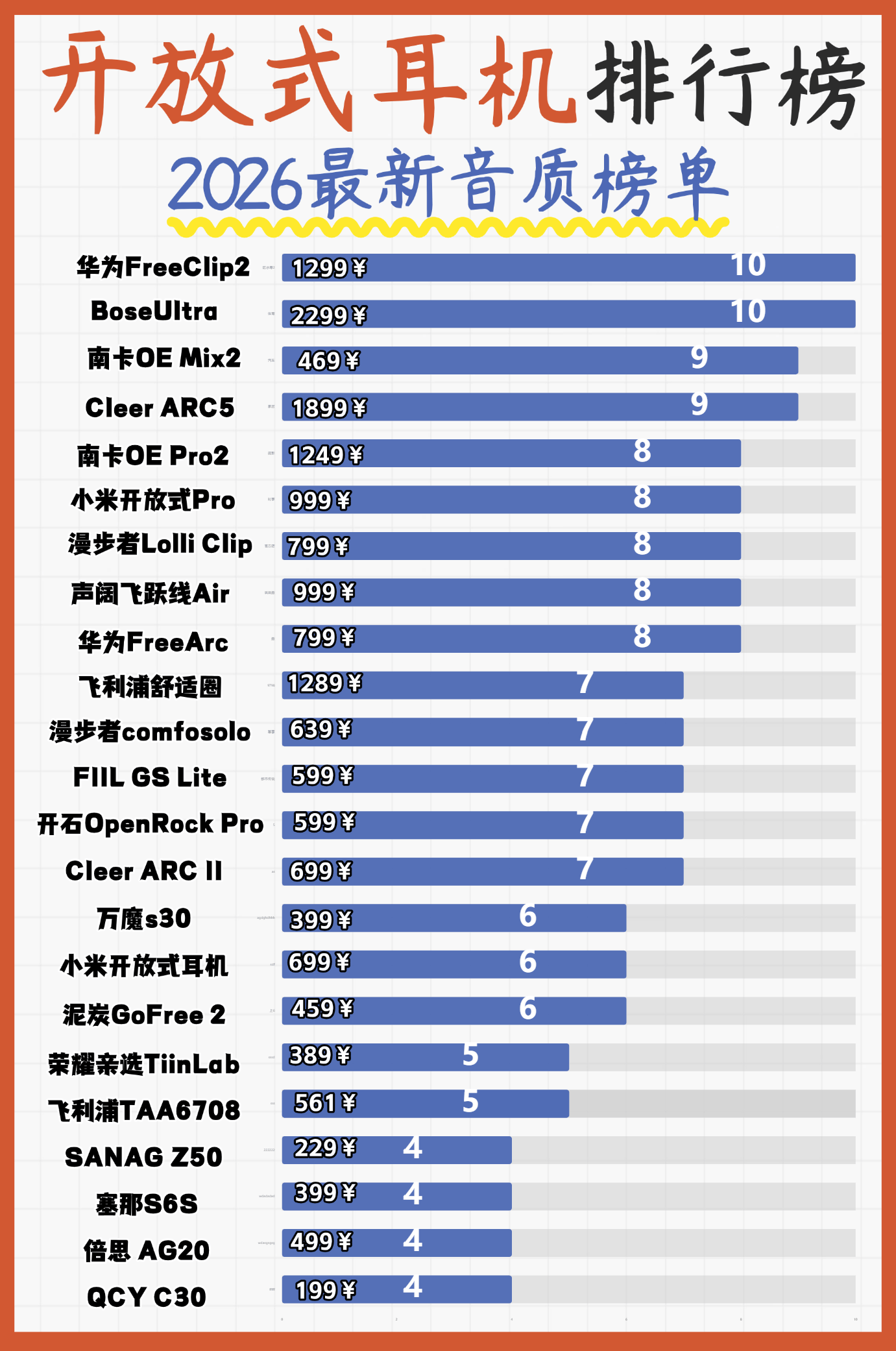 市面上开放式耳机那么多?哪些开放式耳机音质好?哪些牌子的开放式耳机更值得入手呢?今天这边给大家整理了我几年实测的几百款蓝牙耳机里面,表现较为出色的的十款开放式耳机,希望看完本文的你,能够买到适合你的耳机。