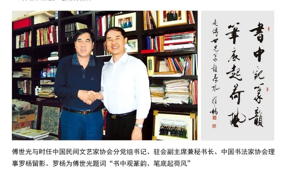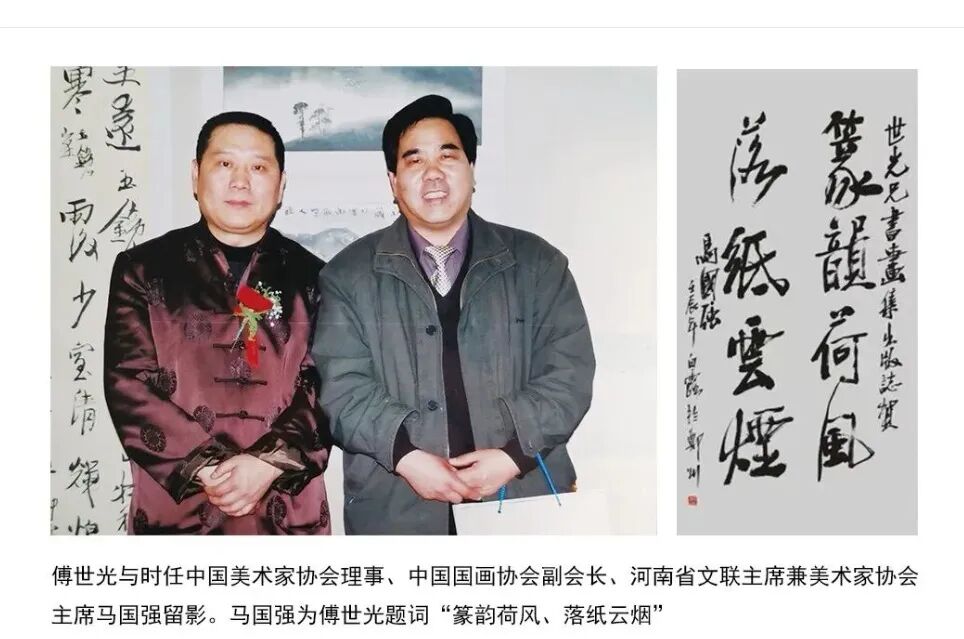 傅世光,号卫宝堂主,曾先后任卫辉市委宣传部常务副部长兼卫辉市文化局局长,中国书画家协会理事,中国民间文艺家协会会员,中国老年书画研究会会员,河南省花鸟画研究会理事,河南省美协、书协、作协会员,河南文艺评论家协会会员,新乡市美协名誉主席,卫辉市美协名誉主席,作协终身名誉主席,卫辉市老年书画协会名誉主席,卫辉市姜太公文化研究会名誉会长,卫辉比干书画艺术研究院名誉院长。书画作品曾得到黄苗子、卢光照、侯德昌、马国强等名家指教,曾多次参加国内外大展并获奖。2011年度被文化部评为“感动中国艺术人物”;2011年《沁园春•雪》被毛主席纪念堂收藏;草篆和彩荷作品分别在中央电视台书画频道第二、三、四届迎新春书画大赛中展播并获优秀奖;2012年4月被盛世中华组委会评为“爱心书画家”,受到了原全国政协副主席王文元亲切接见。2019年9月,草篆作品“日新月异”“水滴石穿”“寿山福海”被刻成碑竖立在“百年巨匠”、当代“草圣”林散之故居广场。2023年被卫辉太公文化研究会,太公镇人民政府和卫辉市文旅局聘为“太公文化大使”,2023年全国第十届当代中国山水画展,傅世光与女儿傅靖棽创作的《鼎力河南·根在中原》巨幅山水画作品获优秀奖,2024年《纪念卫辉建三笔亭二十周年全国书画大赛》创作的《龙腾盛世》作品获一等奖。书法作品《三笔铭文》获三等奖。2024年由中国文联主办《中国梦·两岸情—第九届海峡两岸美术作品展》创作的丈二作品《松石万年》和《毛泽东词沁园春·长沙》分别获优秀奖。2024年被中国传统文化促进会聘为文学艺术专家。2024年荣登中国百强艺术家称号,2025年被艺术中国等10家媒体评为“艺术焦点人物”2026年元月荣登亚州顶级收藏投资艺术风云榜。出版有《为人民笔耕》《太行公仆吴金印》《画家秦岭云》《纪念比干国际名人书画精品选集》书法卷、绘画卷,《纪念卫辉建三笔亭十周年书画作品集》《傅世光与卫辉三笔亭》《华夏精英》《牧野群英》《春满园》《傅世光篆韵荷风集》,《傅世光书画作品艺术》,《傅世光松石作品集》等书30余部。