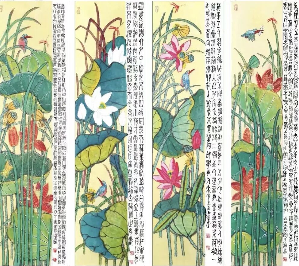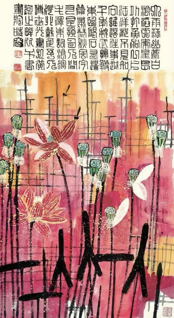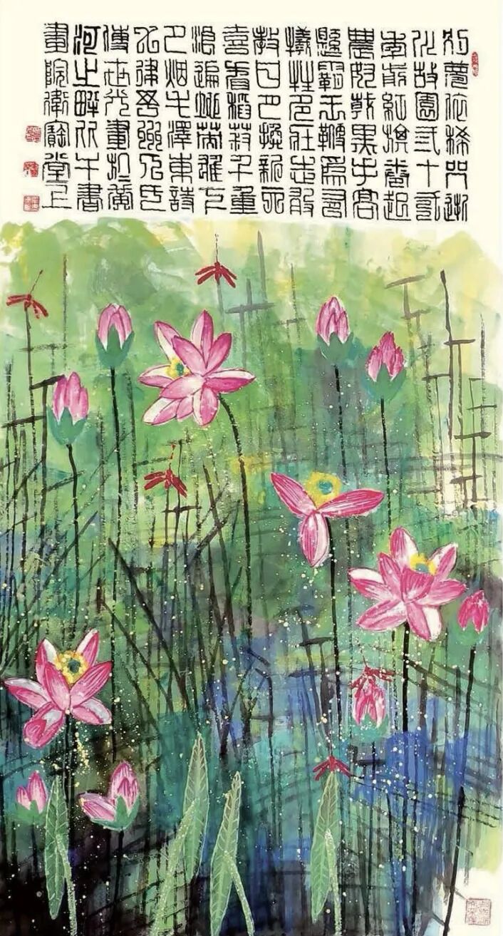 (1。金文荷花诗3首 2。典繁角篆荷花诗4首 3。小篆荷花诗3首 4。草篆荷花爱莲说)