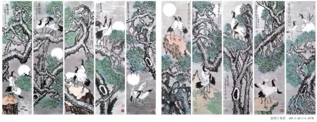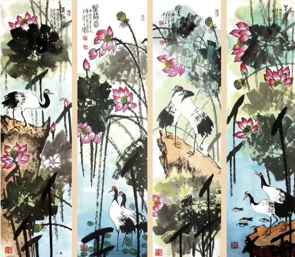 从左至右:清趣图/望远图/相伴图/观鱼图 180x48.5x4cm