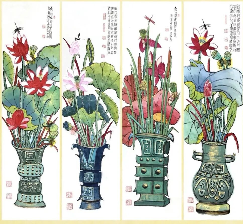 青铜彩荷条屏 180✖️49.5✖️4cm