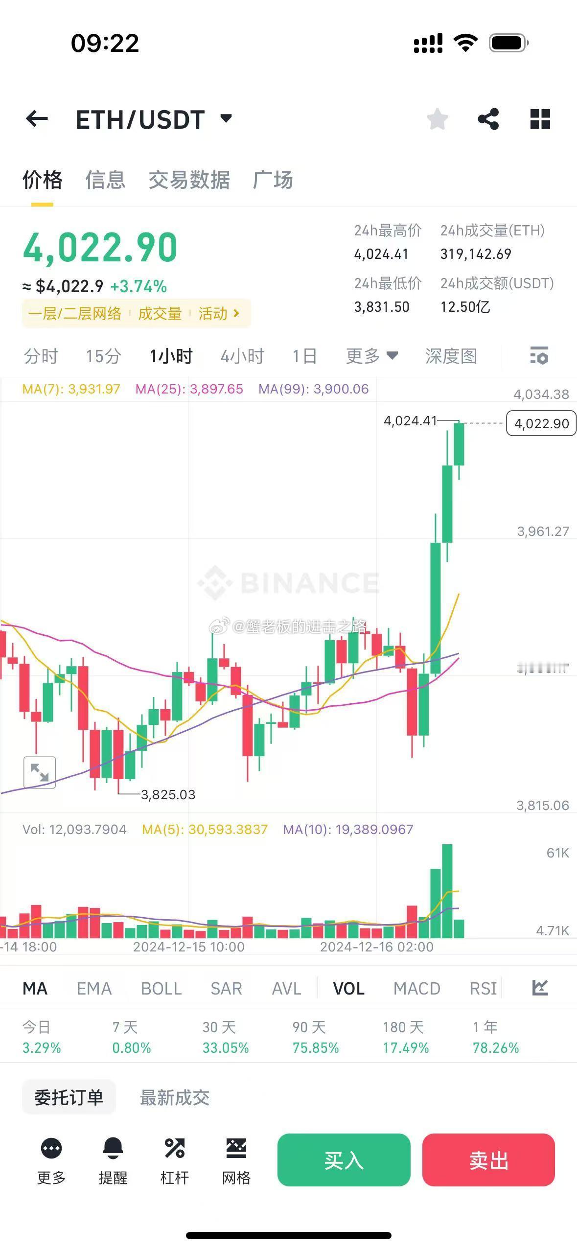 行情正如我周日说的那般一样,以太坊就是在反复的测试支撑洗盘,一旦主升浪开启,你将见不到4000以下的筹码!