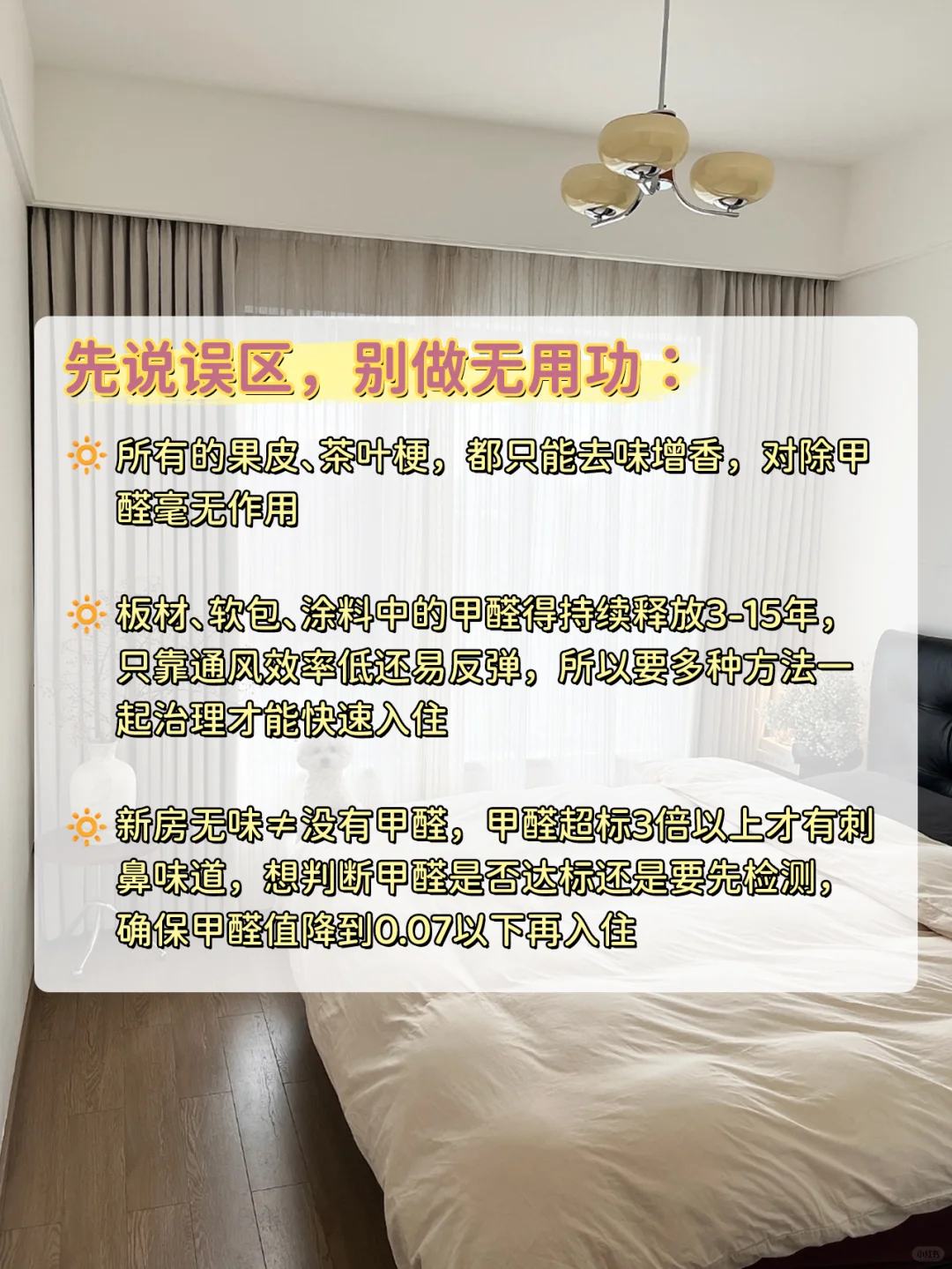 ②板材、软包、涂料中的甲醛得持续释放3-15年,只靠通风效率低还易反弹,所以要多种方法一起治理才能快速入住