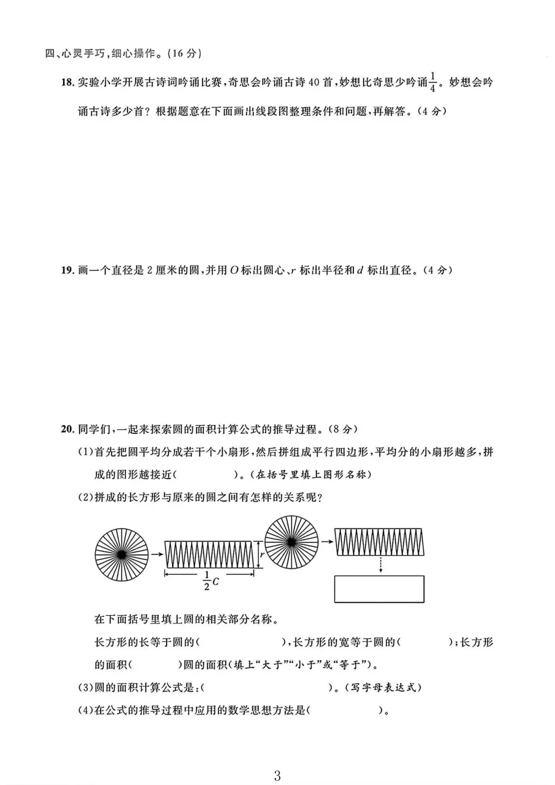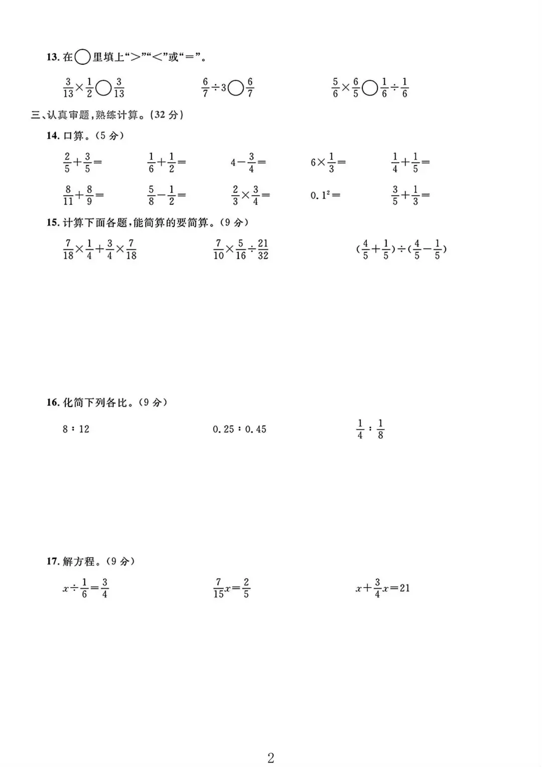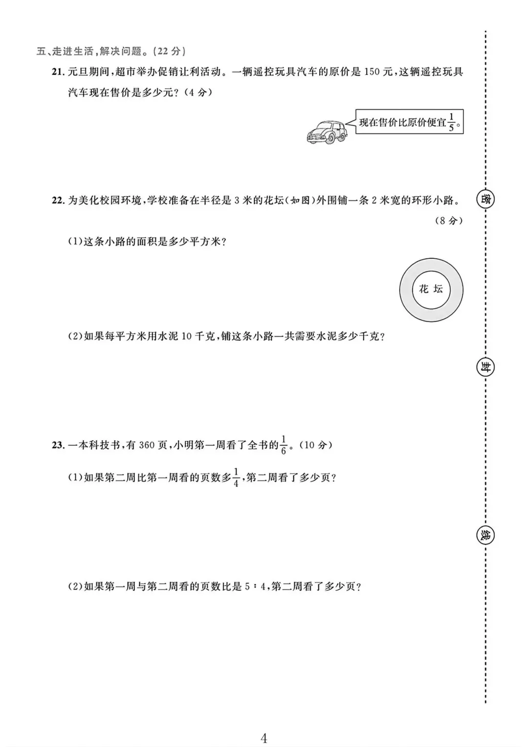 青岛版数学 六年级上册数学 期末试卷 期末考试 电子版可打印