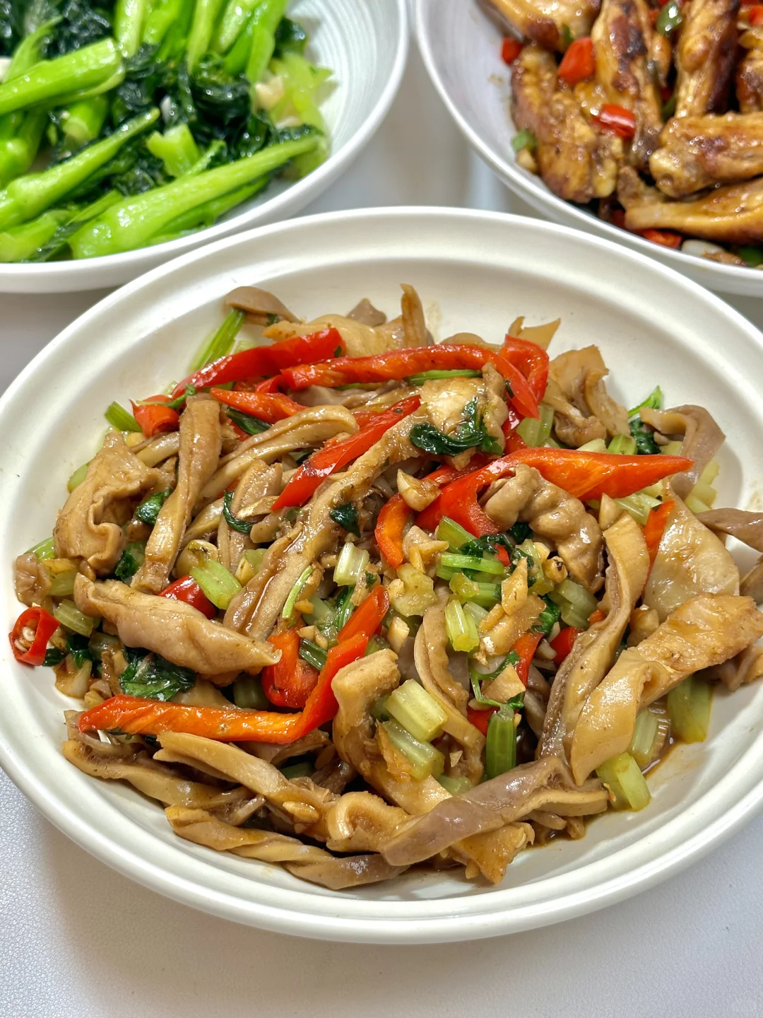今天想吃辣的~做了爆炒猪肚和蒜香辣鸡翅!!超级下饭的!!配上五常大米🍚真的是绝了!比外面湘菜馆好吃太多~