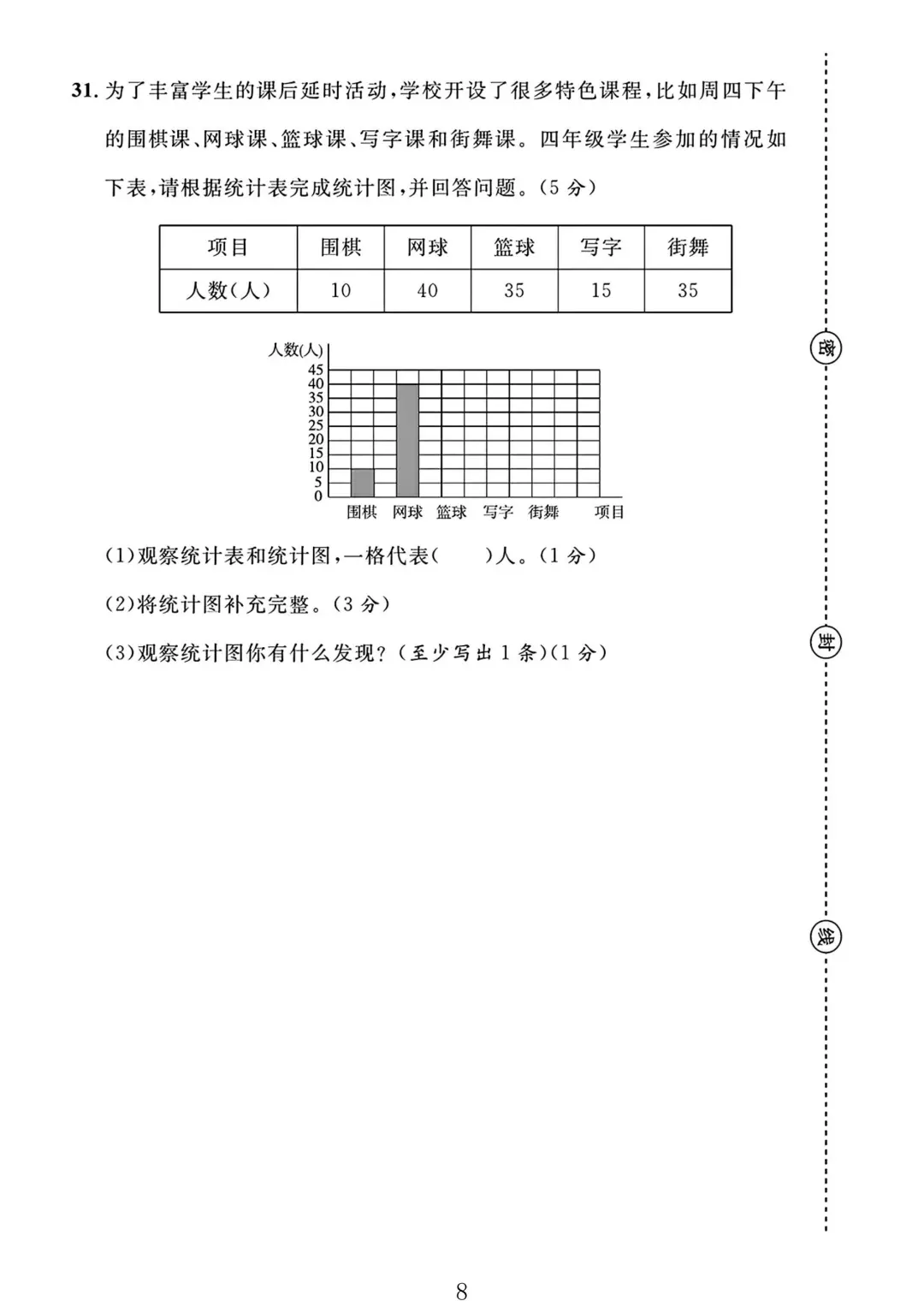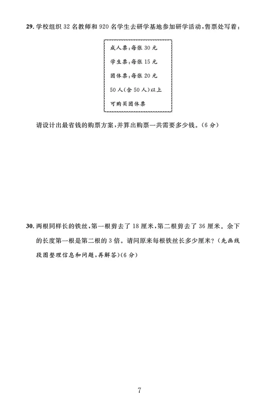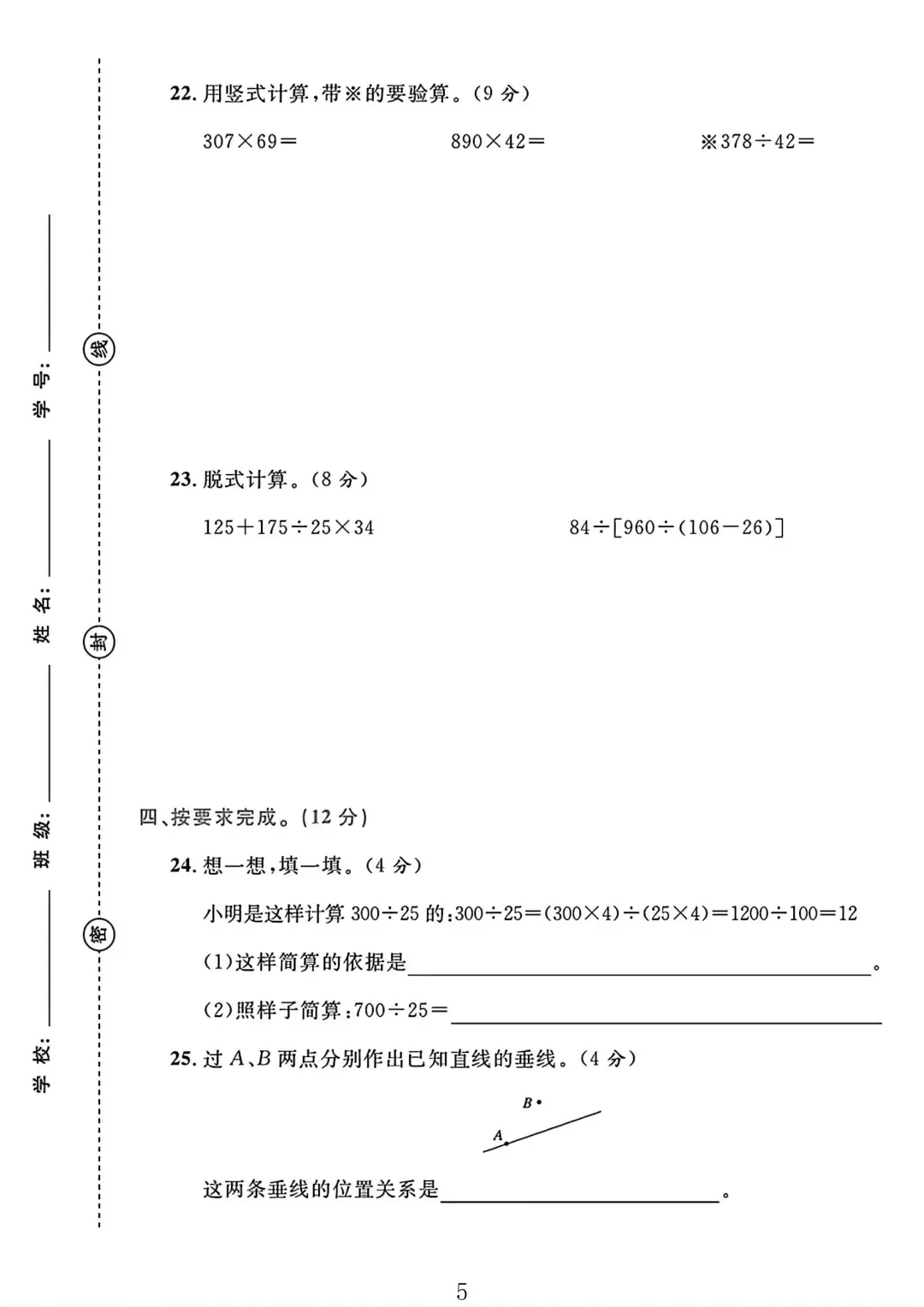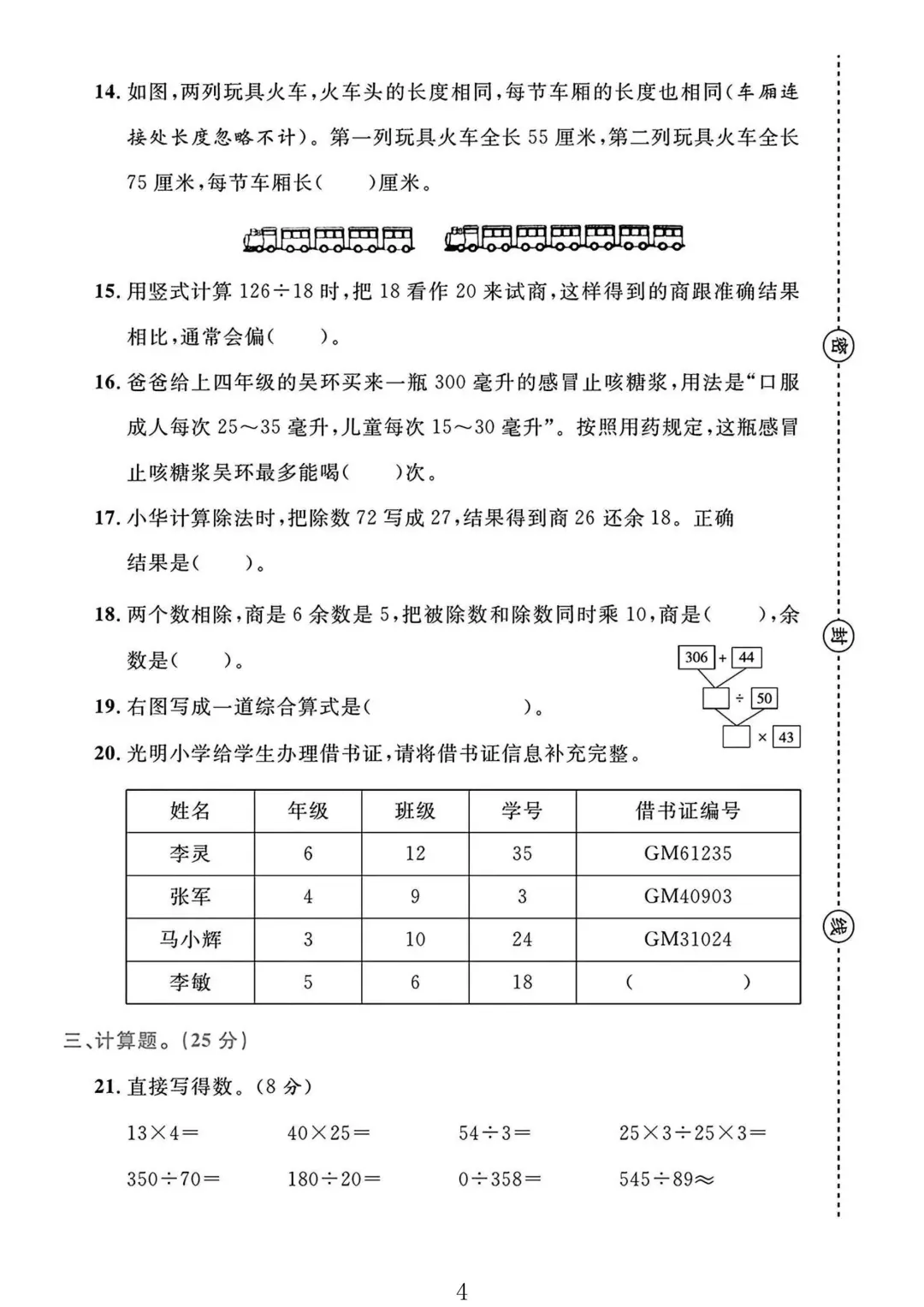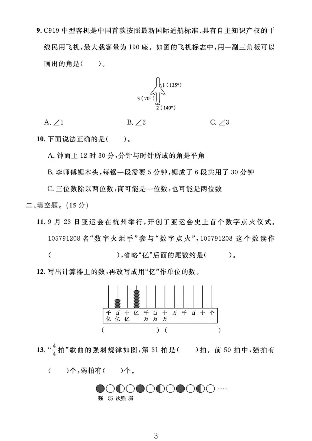 青岛版数学 四年级上册数学 期末考试 期末试卷 电子版可打印