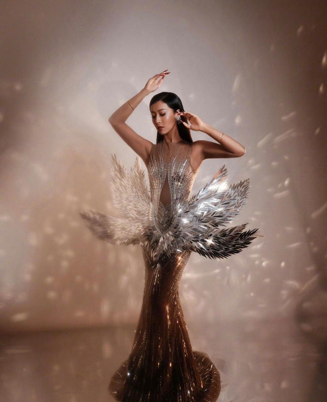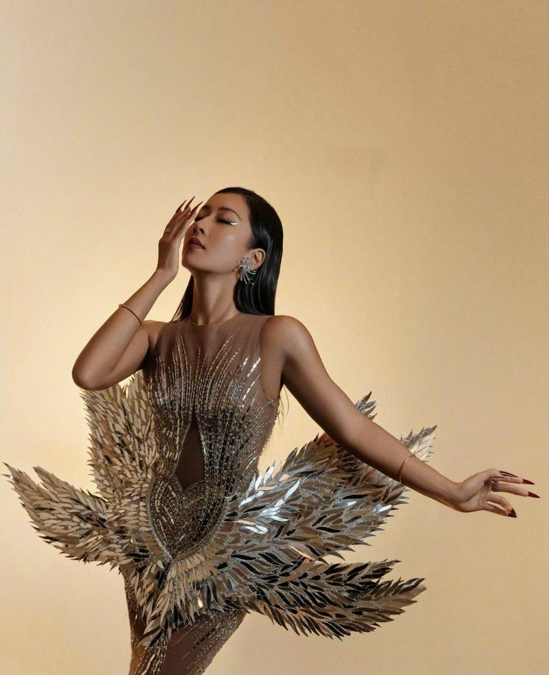 吉克隽逸这是把金鹰节的造型师请过来了么,这套鎏金翅膀造型堪比金鹰女神,设计精致,女神范十足。