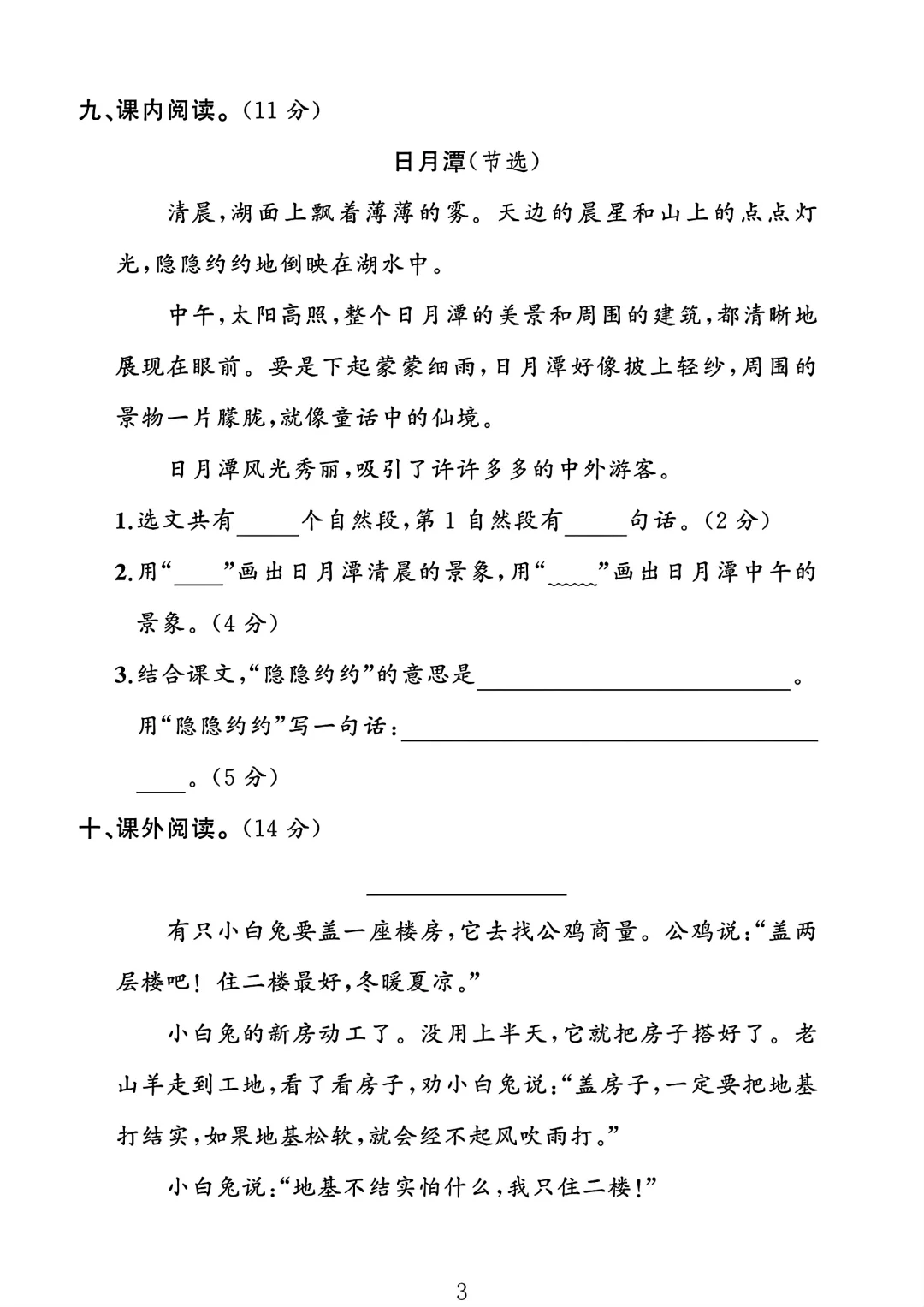 人教版 二年级上册语文 期末考试 期末 试卷 电子版可打印