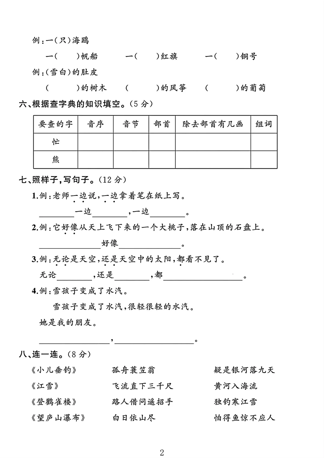 2024二年级语文上册期末试卷 2