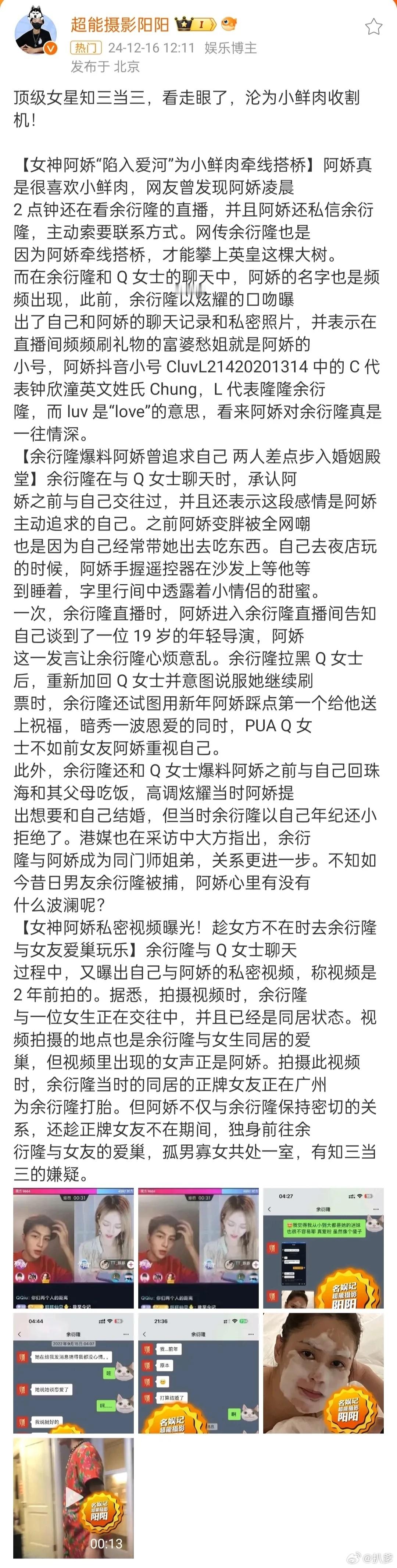 阿娇 余衍隆 狗仔说的顶流女星是阿娇,通篇看下来,感觉阿娇最大的黑点就是眼光!
