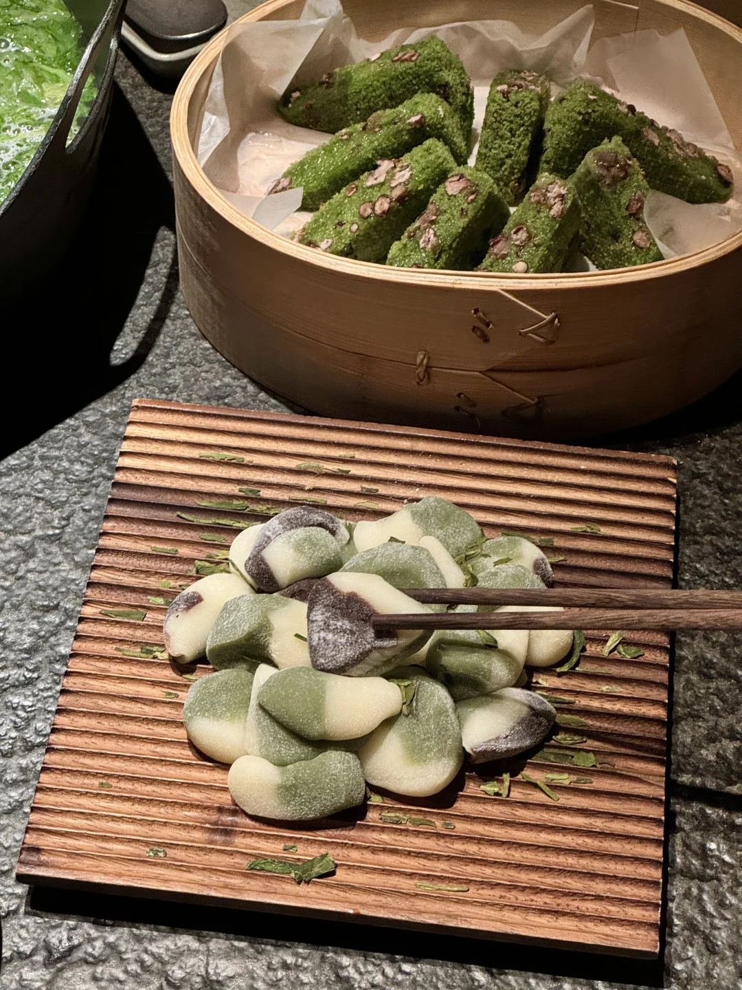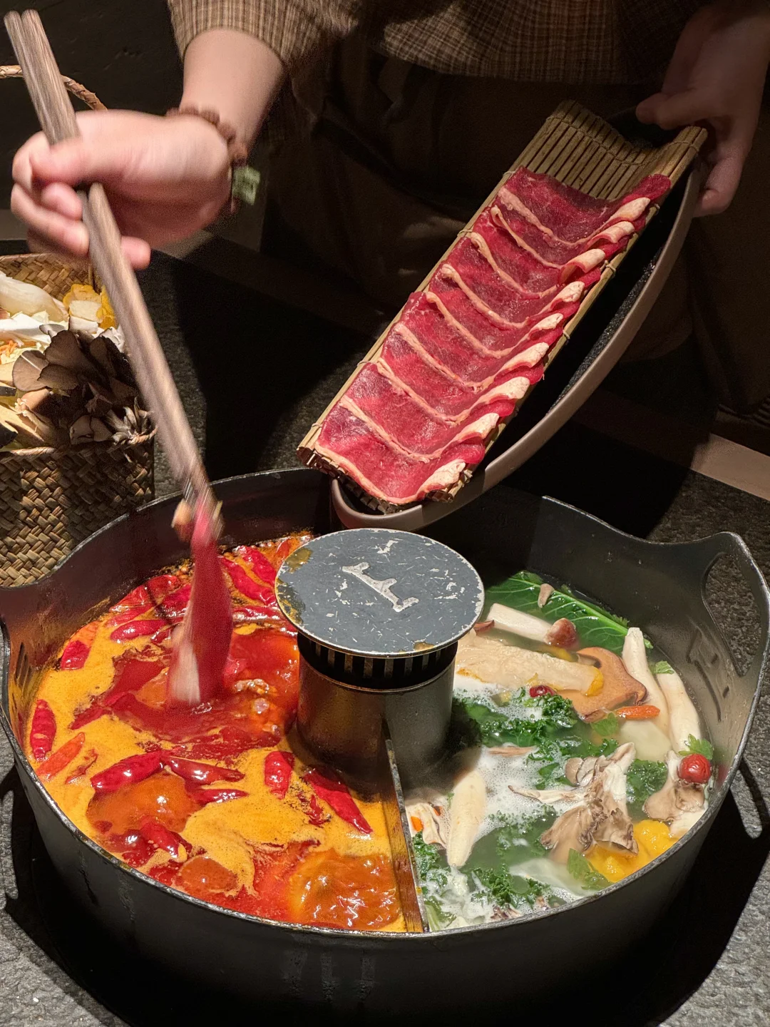三刷了!隔三差五就要来吃这家!新出的一根面又长又宽!厚道有嚼劲😋 吃三次帮大家总结了: ✔️鲜椒牛肉、鲜肥牛…闭眼点!点个鸳鸯锅下在辣锅🌶️蘸上酱料尊嘟好爱 ✔️山里菜:菌菇组合很大一篮子!6组合也足够吃了 ✔️手作麻薯 每次来B点!抹茶巧克力糯叽叽的吼吼吃 ✔️颜值高高的三色冰 三种水果搭配冰淇淋🍦餐后来上一碗好满足~