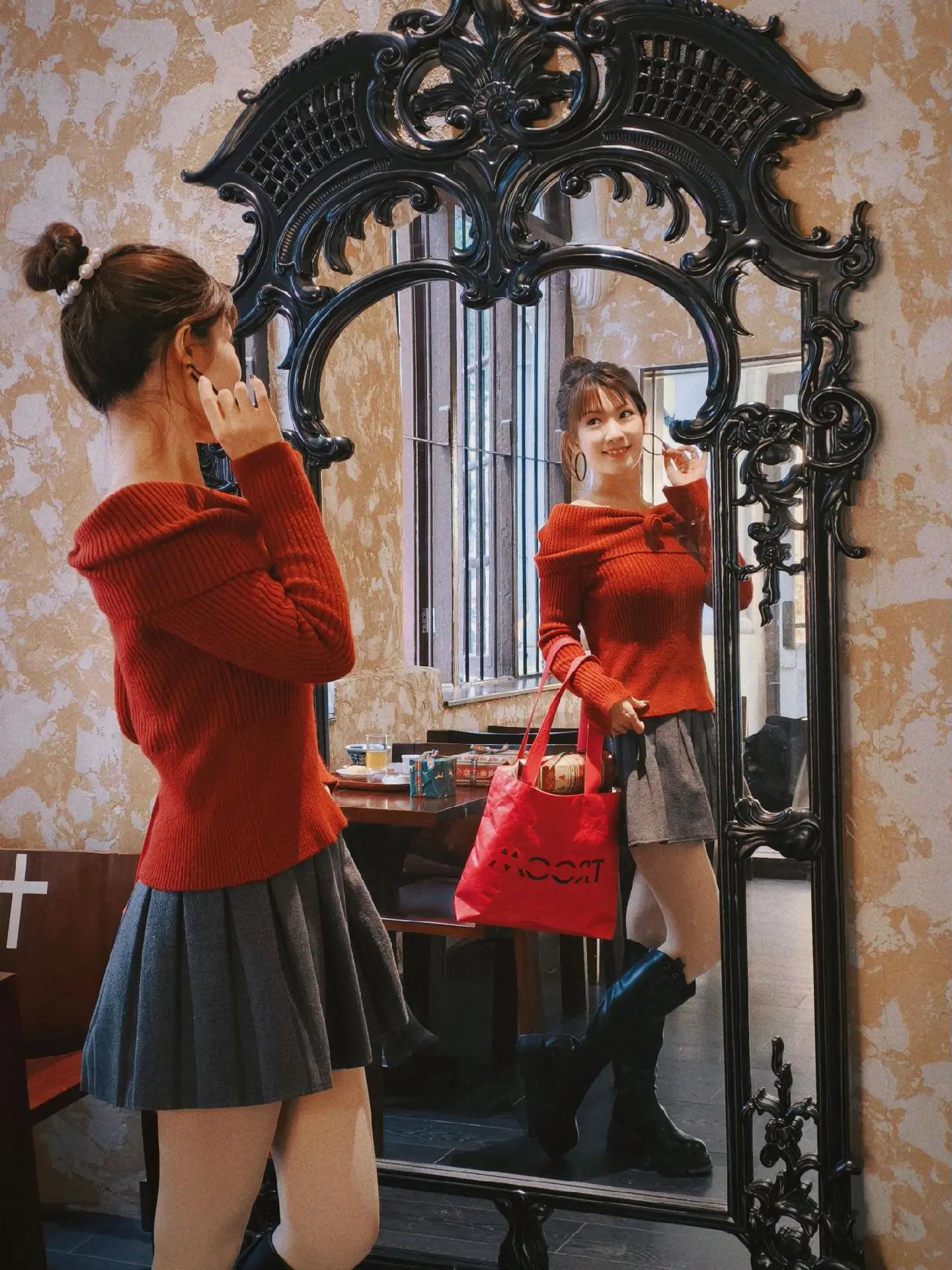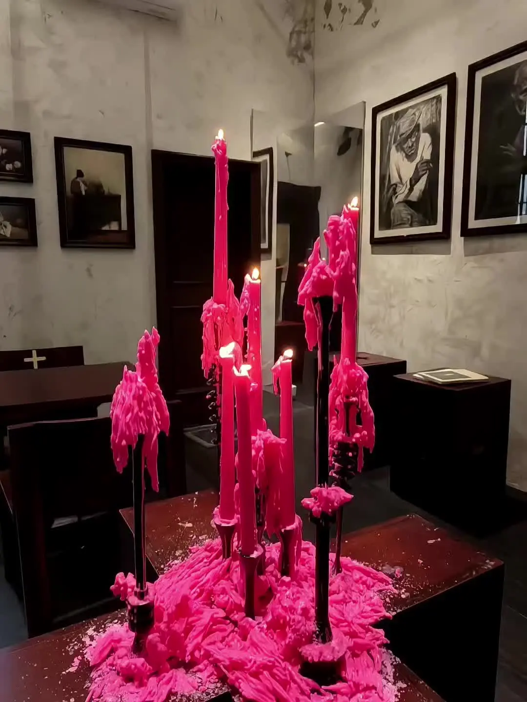 ⭕粉色蜡烛+复古窗台+十字架,圣诞气氛已到位,仿佛之前欧洲,随便拍照都出片📸