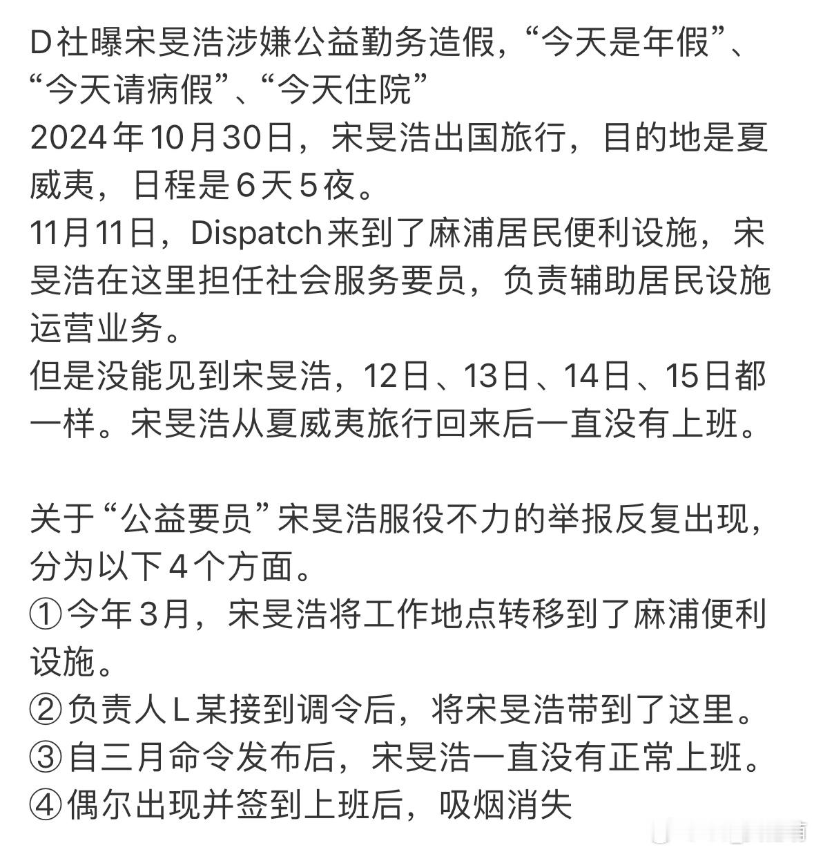 宋旻浩服役被举报不上班 今天是休假 今天又是病假。早说可以这样上班,我都想去代