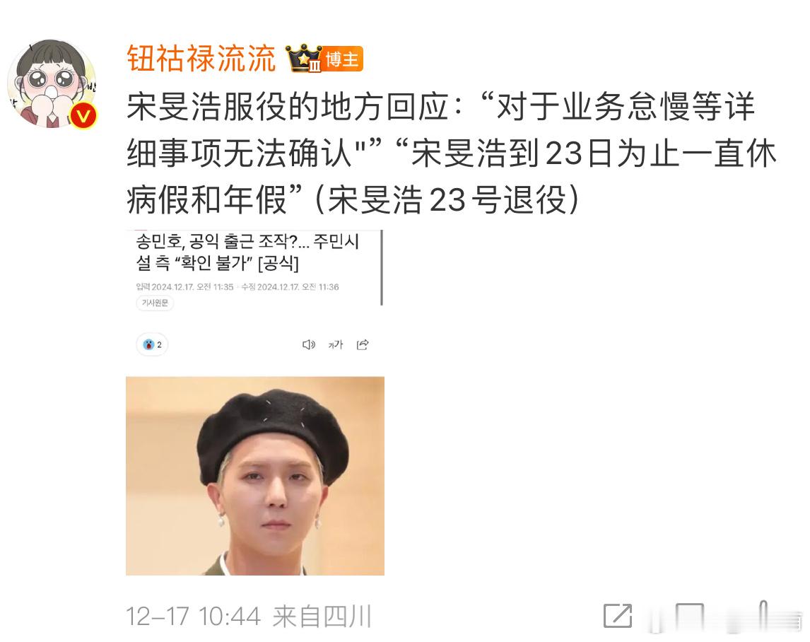 宋旻浩服役被举报不上班 今天是休假 今天又是病假。早说可以这样上班,我都想去代替服役了呀