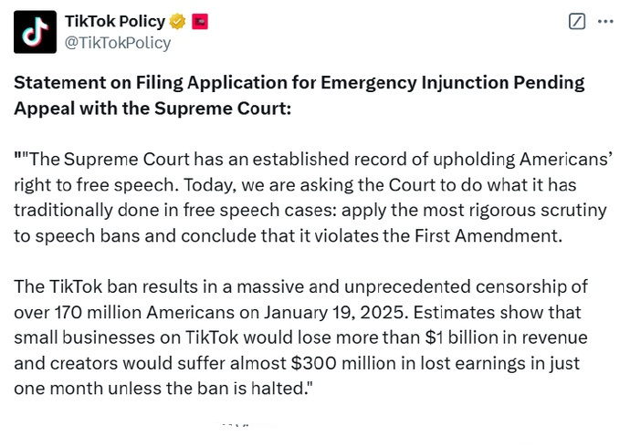 美国当选总统特朗普在海湖庄园会见了TikTok首席执行官周受资. 以下是相关介绍: 会见背景: 今年4月,美国总统拜登签署法案,要求字节跳动将TikTok出售给“非中国所有者”,否则将禁止其在美国运营 。12月6日,美国哥伦比亚特区巡回上诉法院维持该法案,TikTok面临1月19日被禁的危机,于是向美国最高法院提交紧急请求,寻求阻止该法案。 会见经过及相关言论: 特朗普在当日新闻发布会上表示“我们会研究一下TikTok,你知道,我对TikTok有好感”,还称其儿子巴伦建议他关注TikTok上的热门内容创作者。此前,特朗普在总统竞选期间就已转变态度,声称不会再寻求禁止TikTok,并表示想拯救TikTok。 后续影响: 目前尚不清楚此次会面的具体谈话内容及对TikTok命运的最终影响 。有分析人士指出,特朗普可能要求司法部放弃执行法律,或敦促国会废除法案,但都存在一定限制因素。