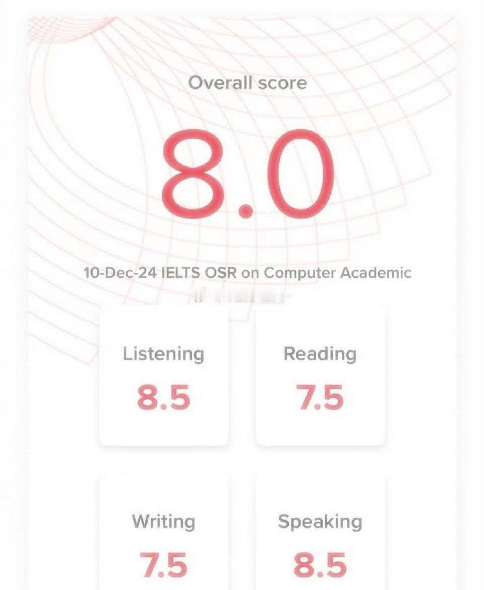 二女儿Lily雅思分数高达8.0分