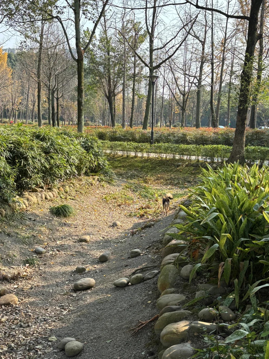 这周末四川的太阳特别好,于是我们带着小黑去附近的公园走了走。