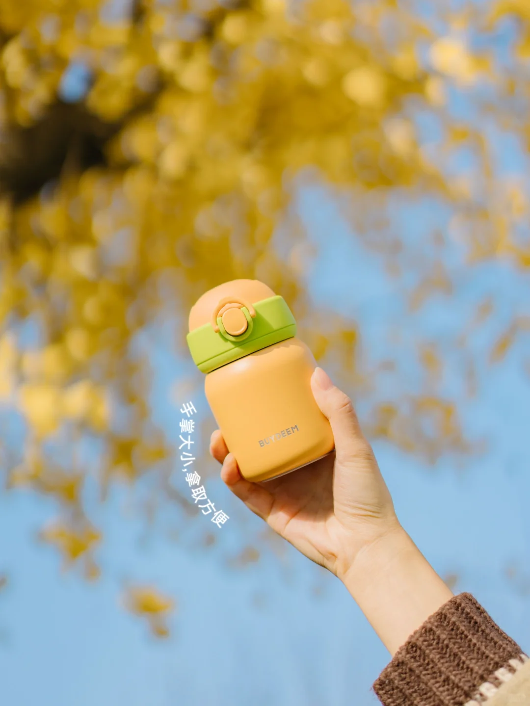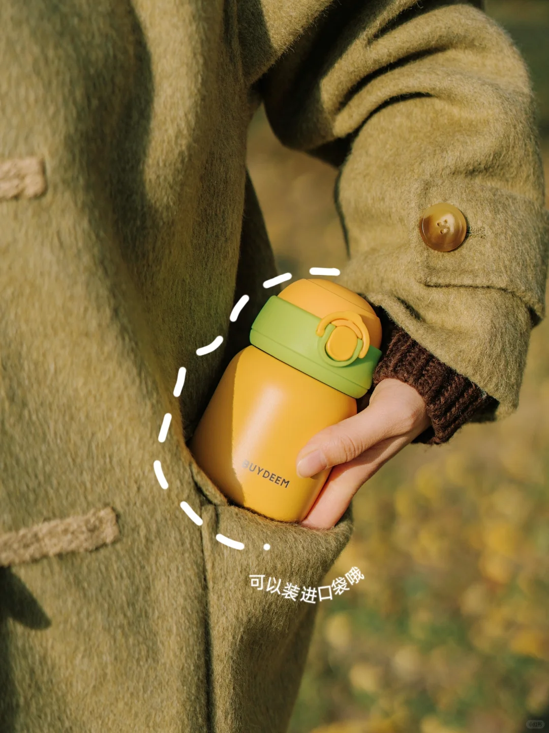 如果秋冬的温暖有颜色 那⼀定是甜橘橙色 对于周末逛公园爱好者来说 能在寒冷的季节随时喝上⼀⼝热⽔是补充能量最重要的⽅式 这次出⾏带上我的新杯⼦-北鼎⼝袋杯 对⽐我之前笨重的杯⼦ 它小小⼀个,⽅便塞进⾐服⼝袋 也可以塞进⼩包⾥,完全⽆负担 奶呼呼的外观+暖洋洋的甜橘橙配⾊ 在保温实用的同时,也兼具了美观 秋冬天随时随地喝到⼀杯温⽔ 让秋冬出⾏变得更简单更幸福