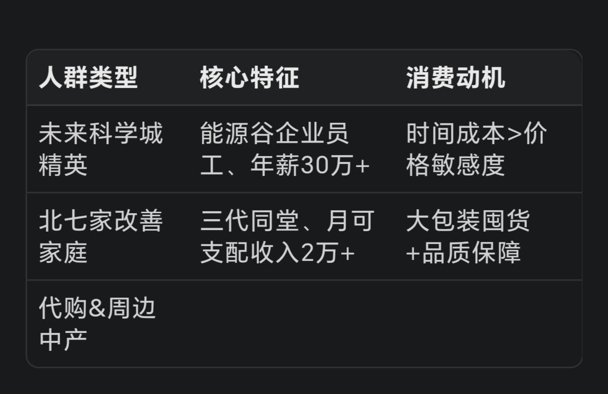 根据山姆官方数据以及现场观察,消费主力分为三大人群。