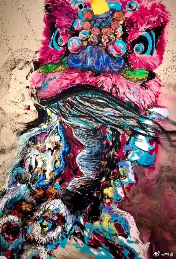 陈乔恩老公画作首次参加拍卖会,作品水墨画《粉红狮》被拍出22万新台币!Alan在作品《粉红狮》将水墨韵味与抽象色彩巧妙结合,细看真的很震撼!