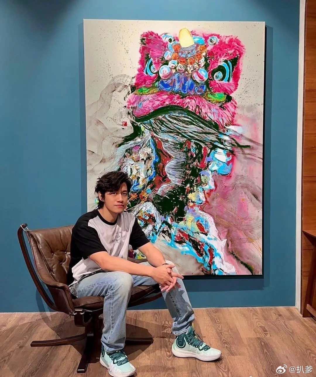 陈乔恩老公画作首次参加拍卖会,作品水墨画《粉红狮》被拍出22万新台币!Alan在