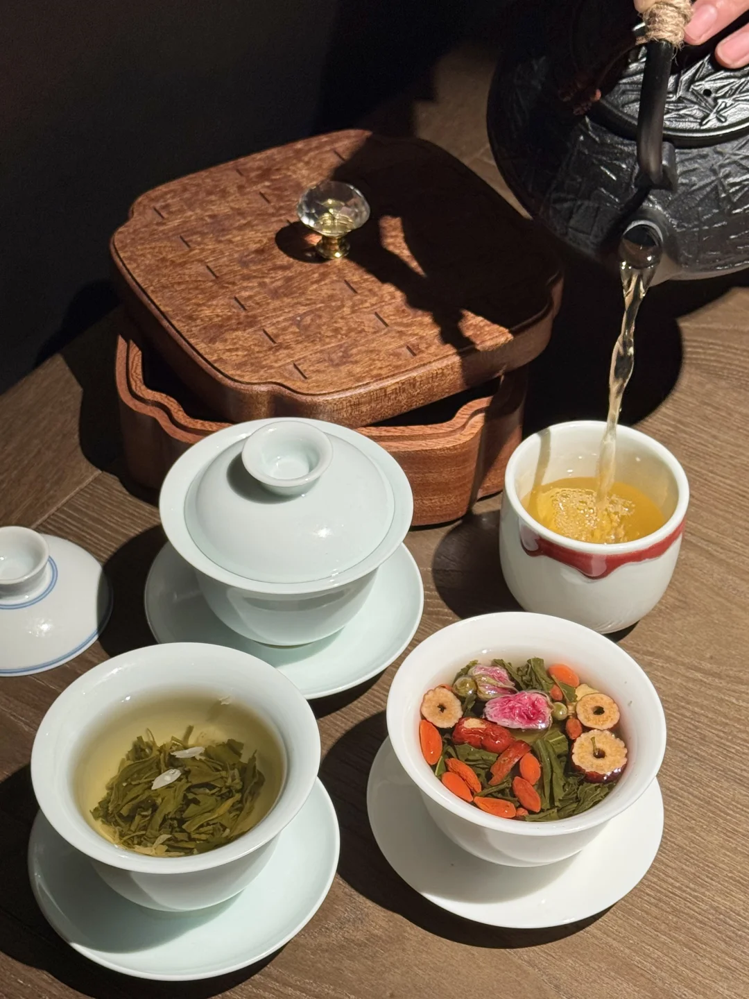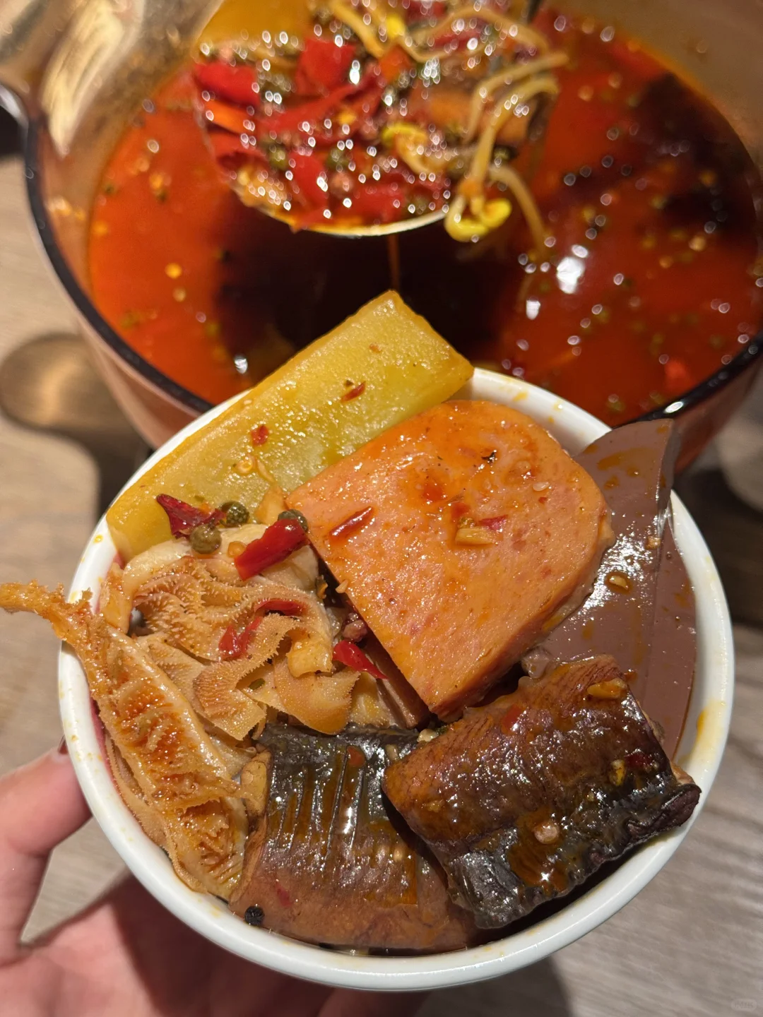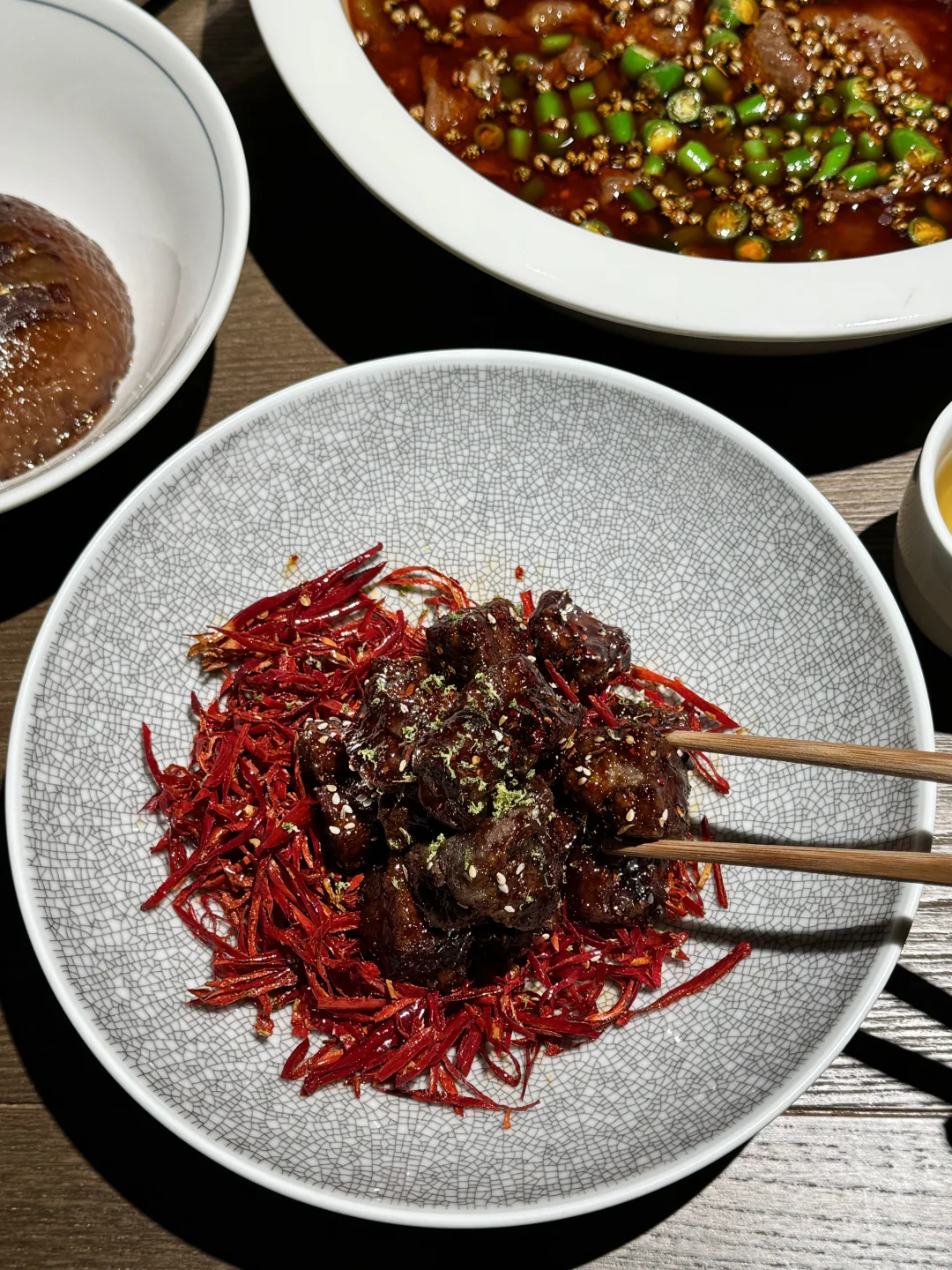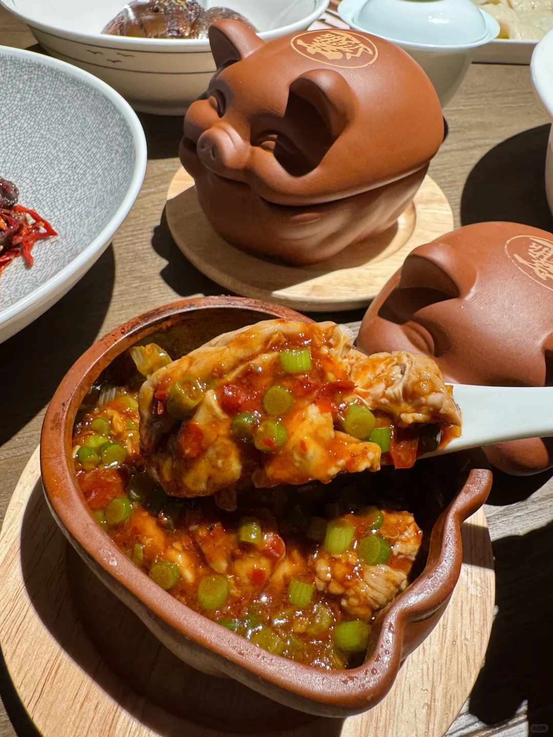 终于又吃到好吃的双味水煮黄牛肉了!两种不同口味的牛肉!肉质扎实有嚼劲 再来上一份面🍜香迷糊了啊!! ✔️甜烧白 第一次吃甜烧白 甜甜的糯米饭搭配薄薄的五花肉 香香甜甜的口感好喜欢❤️ ✔️馋嘴脑花 装在小猪🐷器皿里的脑花 kuku一顿炫米饭🍚! ✔️堂涮血旺 热气腾腾好适合这个天气吃!锅开后加入血旺黄鳝和火腿 毛肚直接涮着吃 辣辣的好上头! ✔️盖碗茶 餐后来上一份盖碗茶 淡淡的茶香很清新 干椒牛肉粒、牛肉萃饭、酸甜口的宫爆虾球🍤、酸奶碗…盲点都不踩雷!