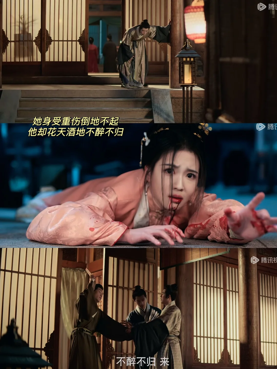 导演真的太会拍,这个转场真是天大的讽刺,窦明用尽全力伸手去够这咫尺距离,魏廷瑜却在里边花天酒地,最后一幕的血迹才知道明儿原来爬了那么远!