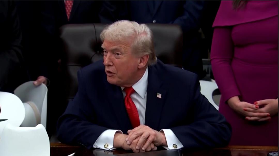 图/特朗普在白宫对民主党人公布的新一批爱泼斯坦案相关照片作出回应