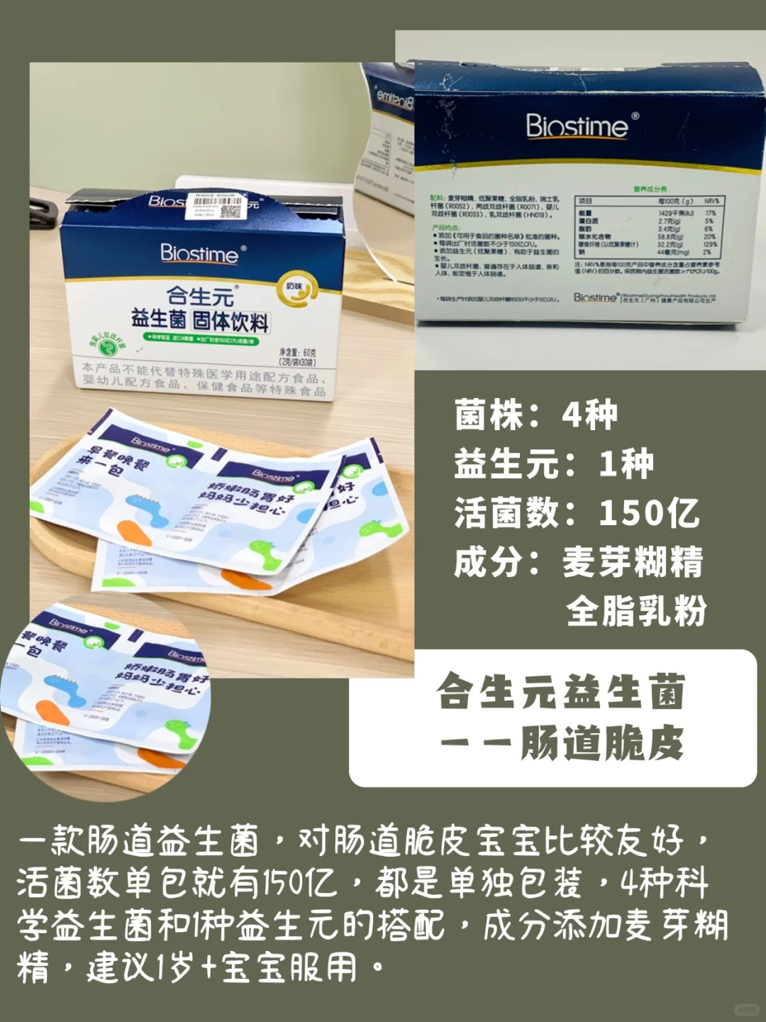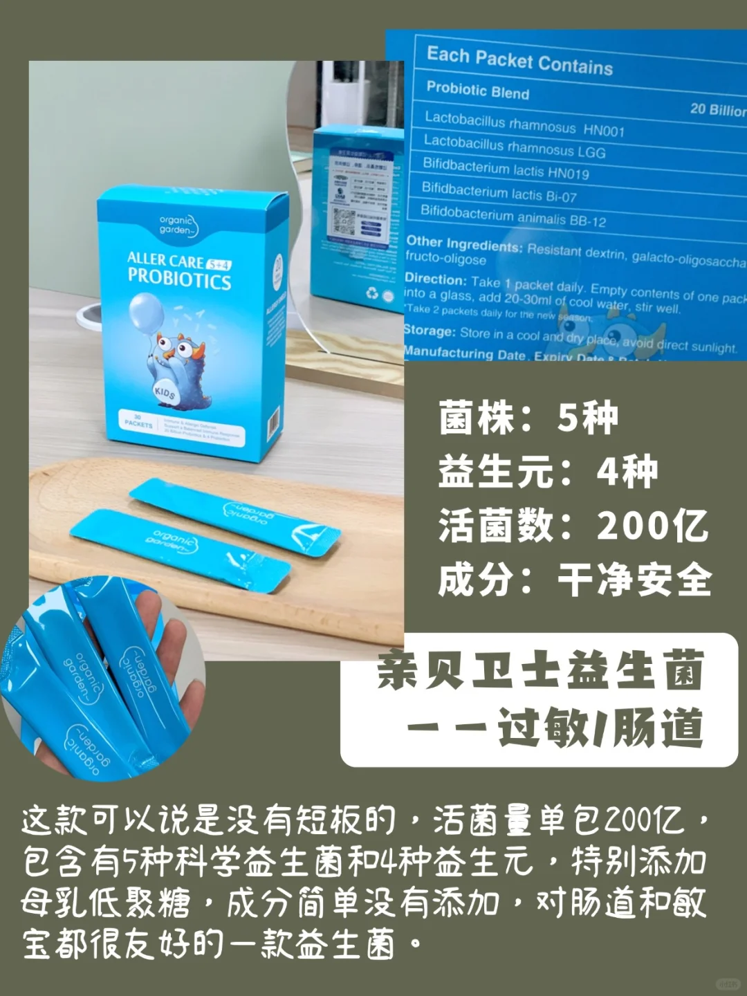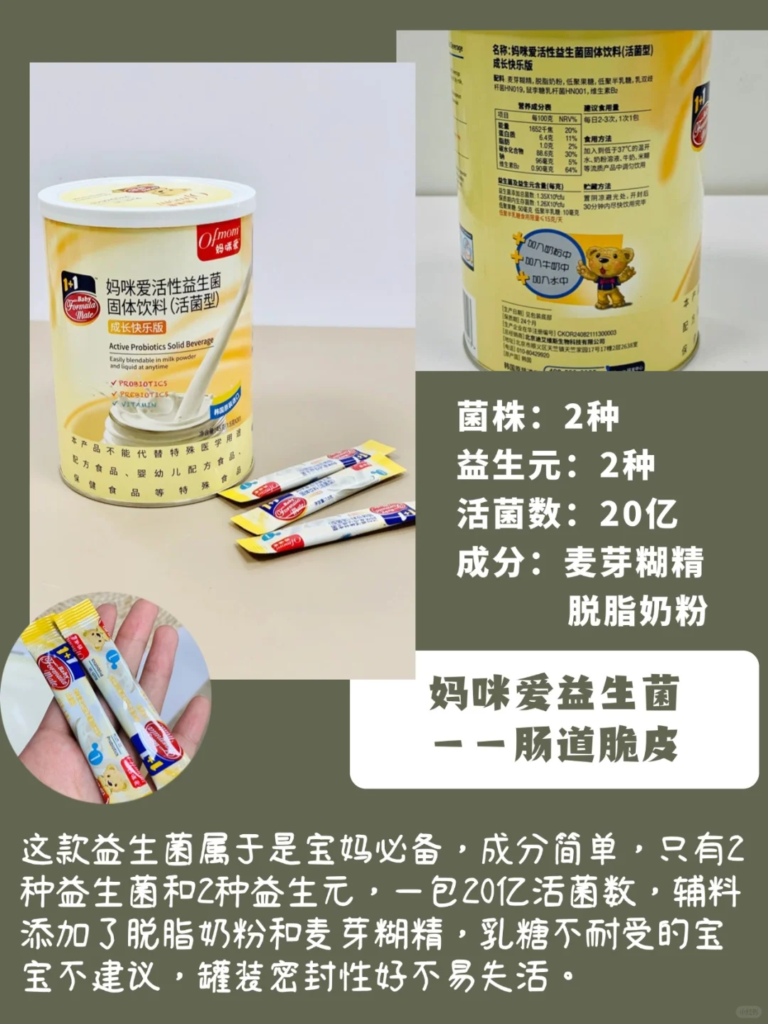 市面上很多的益生菌成分添加很多,大部分是不适合乳糖不耐受或者过敏的宝宝的,脆皮宝宝建议还是选择成分无添加的益生菌