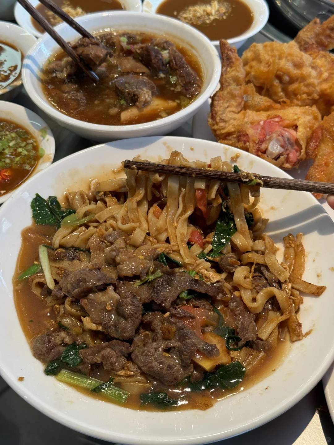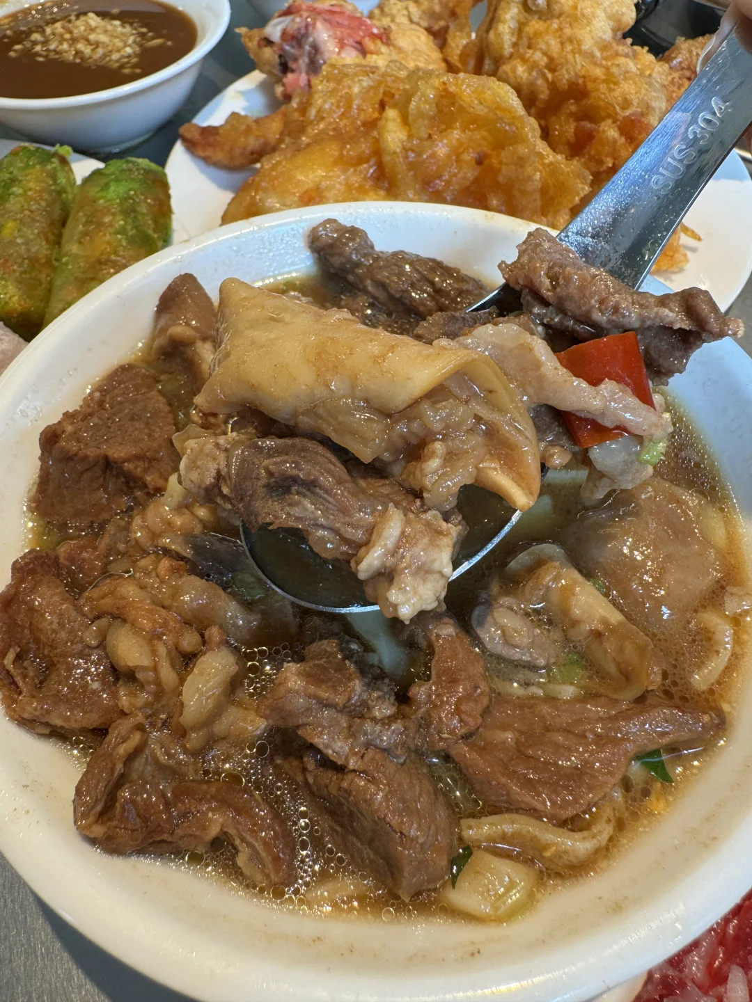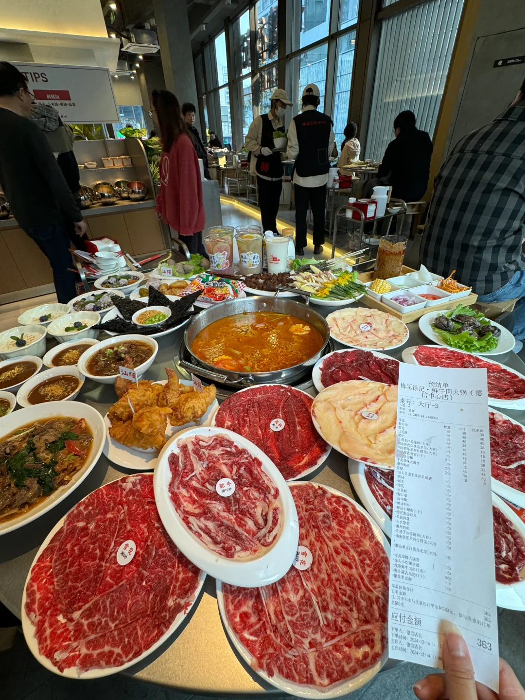 是我近期吃过坠坠好吃的潮汕牛肉火锅了。。。。 和朋友一起点了一堆!各个部位的肉都很好吃!!! 我强推吊龙、雪花、胸口油!肉质都很鲜嫩! 轻轻涮个8秒蘸上沙茶酱和金蒜!!谁懂这一口的含金量啊。。。。还有各种汕头小吃都很正宗🔥腐乳鸡翅、潮州奶冻、各种草粿、卤牛肉都很好吃!!!