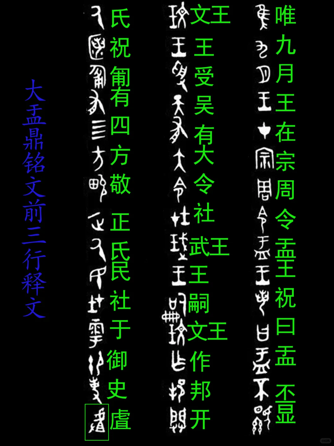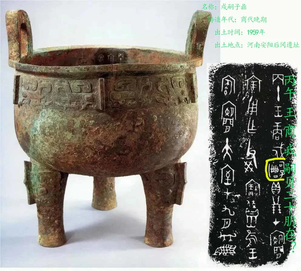 大盂鼎西周康王时期“标准器”,现收藏于国家博物馆。 铭文内容是康王册封第二代(或三代)”曾“侯及宗室成员。 一、大盂鼎尾处铭文,图二,三: 铭文释文:用作祖南公宝鼎。唯王二十又三祀。 大致意思:在王二十三年时作宝鼎纪念先祖(南公)并铭记周王的册封。 信息:该鼎是纪念其先祖:南公。 叶家山M111出土爵及方座簋,图四: 1、方座簋铭文:虞作敕考(老)南公宝樽彝。 2、爵铭文:作南公樽彝。 信息:该墓主就是:南公。 二、大盂鼎铭文前两行,图五,六。 大盂鼎铭文前两行释文:唯九月王在宗周令盂,王祝曰:盂,丕显文王授吴有大令,社武王嗣文王作邦~ 大致意思:九月王到宗周,王说“盂”(被册封宗人员总称),文王时吴(氏族名)就听令于文王,武王时成为嗣臣(周宗室成员),文王时还是独立的邦(国)。 信息:祖为南公的氏族,文王时是独立的邦国,武王时被册封成为周的嗣臣(公、或伯爵)。 三、与大盂鼎册封铭文类似的有成王“标准器”何尊,图七。 何尊是成王时期“标准器”,宝鸡青铜器博物院藏品,铭文内容也是册封一位公爵。 我们先来看何尊尾处铭文:作某公宝樽彝唯王五祀。 大致意思:某公在王五年时被册封,该公作宝樽彝以铭记周王的册封。 四、何尊铭文中间前两行,图八,九。 何尊铭文中间部分释文:~文王受兹(嗣)大命、唯武王既克大邑商~ 大致意思:该公的先祖文王时接受大令成为周的嗣臣,武王时跟随武王共同攻克了大邑商。 信息: 该公文王时就是周的嗣臣。 五、何尊铭文重点字:丝(嗣)的识读。 兹,嗣,“嗣”字商晚西周早期时有两种写法,图十,十一。 1、商晚期戊嗣子鼎,铭文:丙午王赏我嗣贝(大意:丙午商王赏其嗣子贝),嗣以“册”字为主字。 2、西周早期(成王)克罍铭文节选。 后半部分铭文释文:克宅燕纳土众有嗣。 大致意思:燕国的土地册封给你们,你们都是嗣臣,“嗣”字以“丝”字为主字。 六、结论 1、大盂鼎铭文前两行释文。 信息:祖为南公的氏族,文王时是独立的邦国,武王时被册封成为周的嗣臣(公、或伯爵)。 2、《史记吴太伯史记》信息:是时周武王克殷,求太伯、仲雍之后,得周章。周章已君吴,因而封之。乃封周章弟虞仲于周之北故夏虚,是为虞仲,列为诸侯。 信息:周章在武王时已是吴君(独立的邦国),武王册封周章及其弟虞仲,兄弟被武王册封都成为周的诸侯。 综上所述,湖北叶家山西周早期曾侯墓地M111墓主(爵位南公)应是《史记吴太伯世家》记载的吴国先祖周章。 历史 青铜器