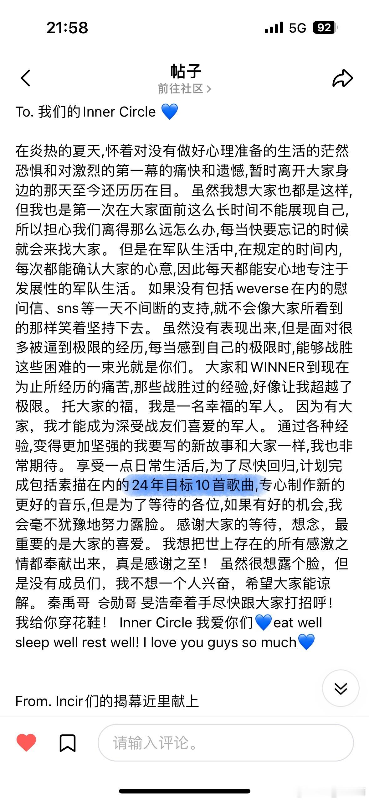 手写信的意义是真诚和热情,谢谢拿队💙重点:24年写了10首歌正规四辑快点来吧?